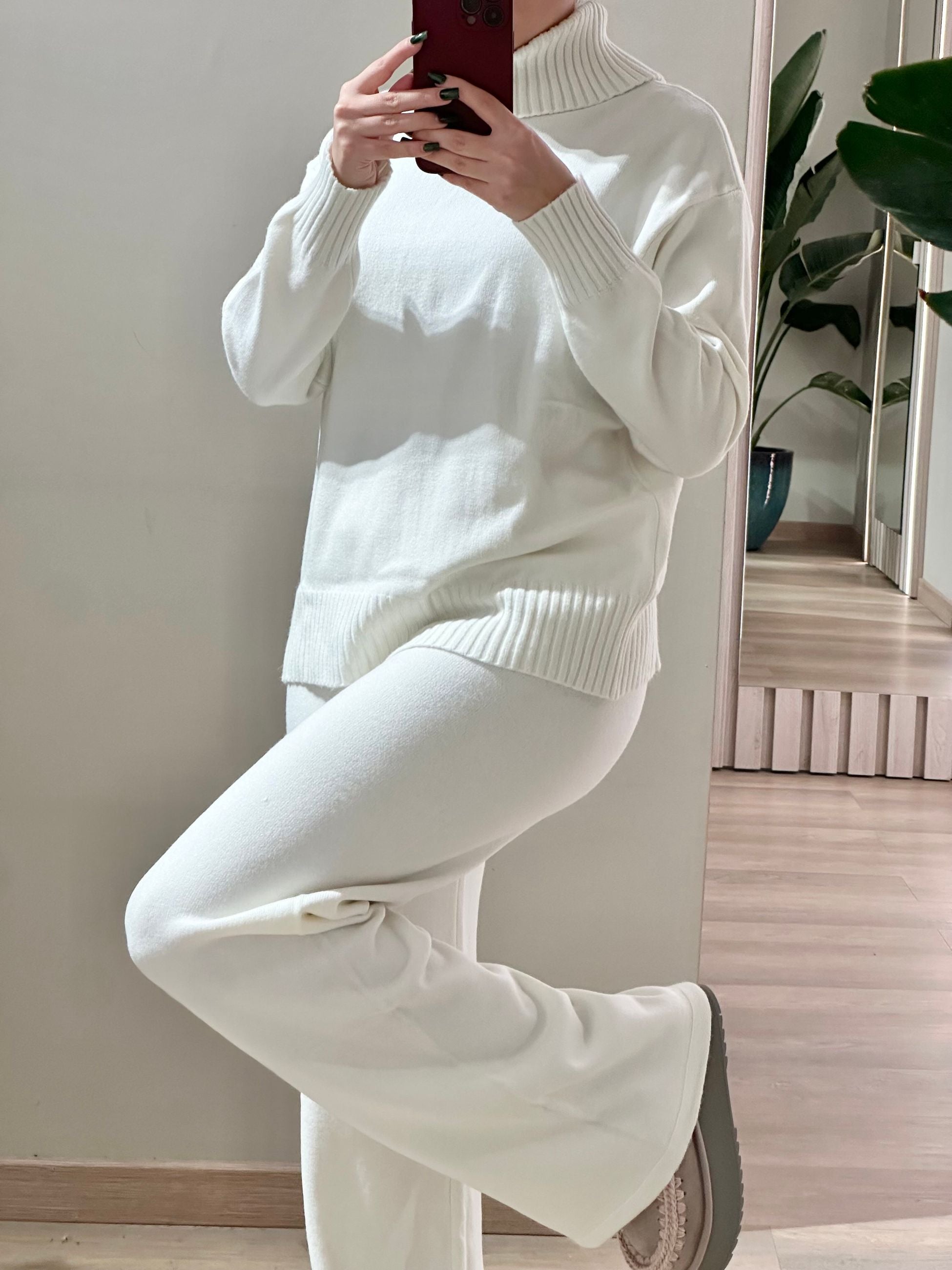 Gaudi Maglia Collo Alto in Filato con Righe Beige