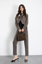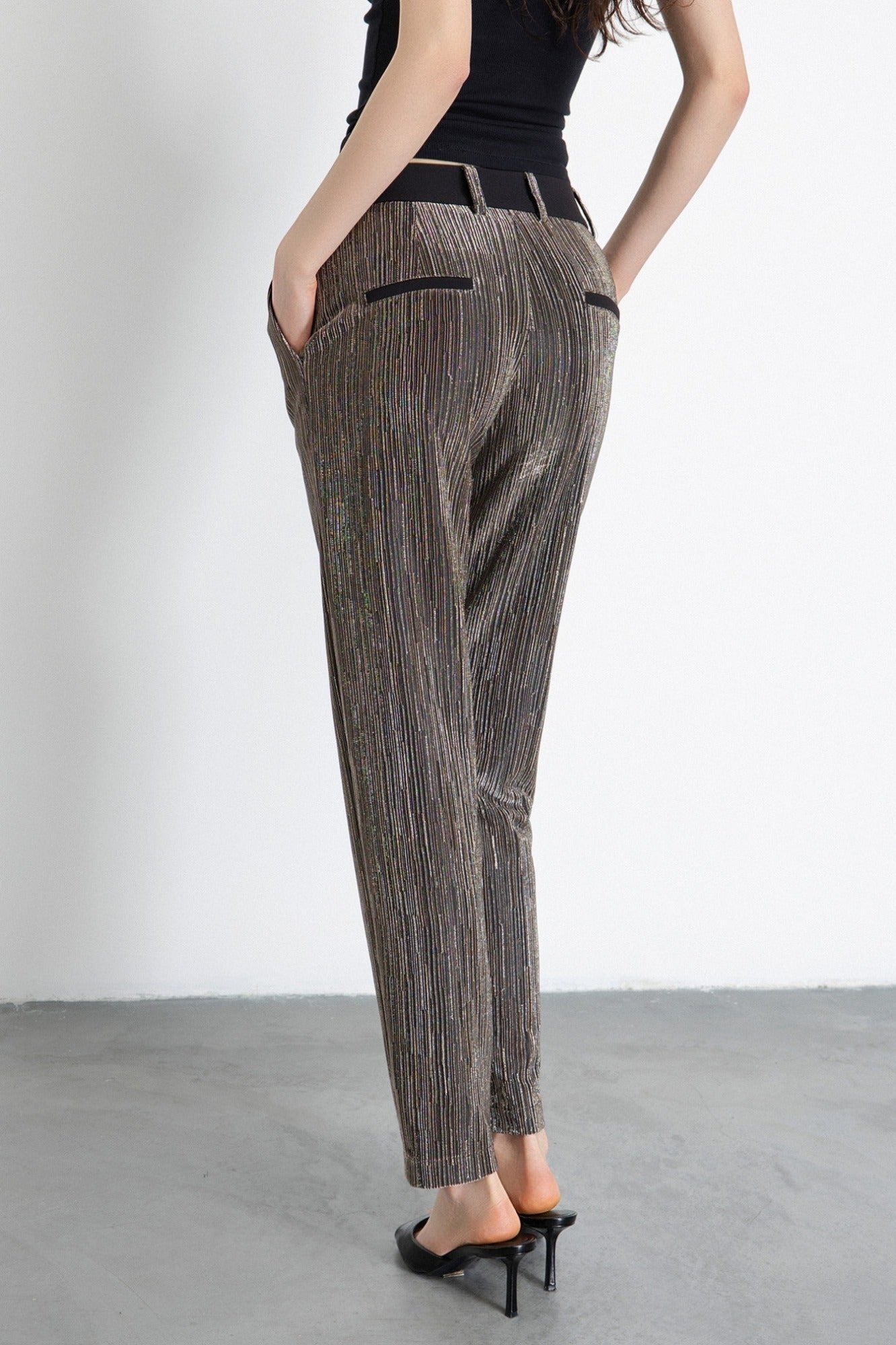 Pantalone donna in tecnolurex modello sigaretta chiusura con cerniera tasche laterali e bustino nero in vita