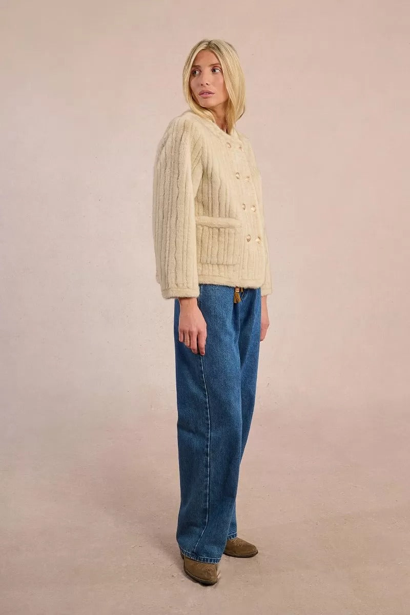 Molly Bracken Giacca da Ufficiale Effetto Pelliccia Beige
