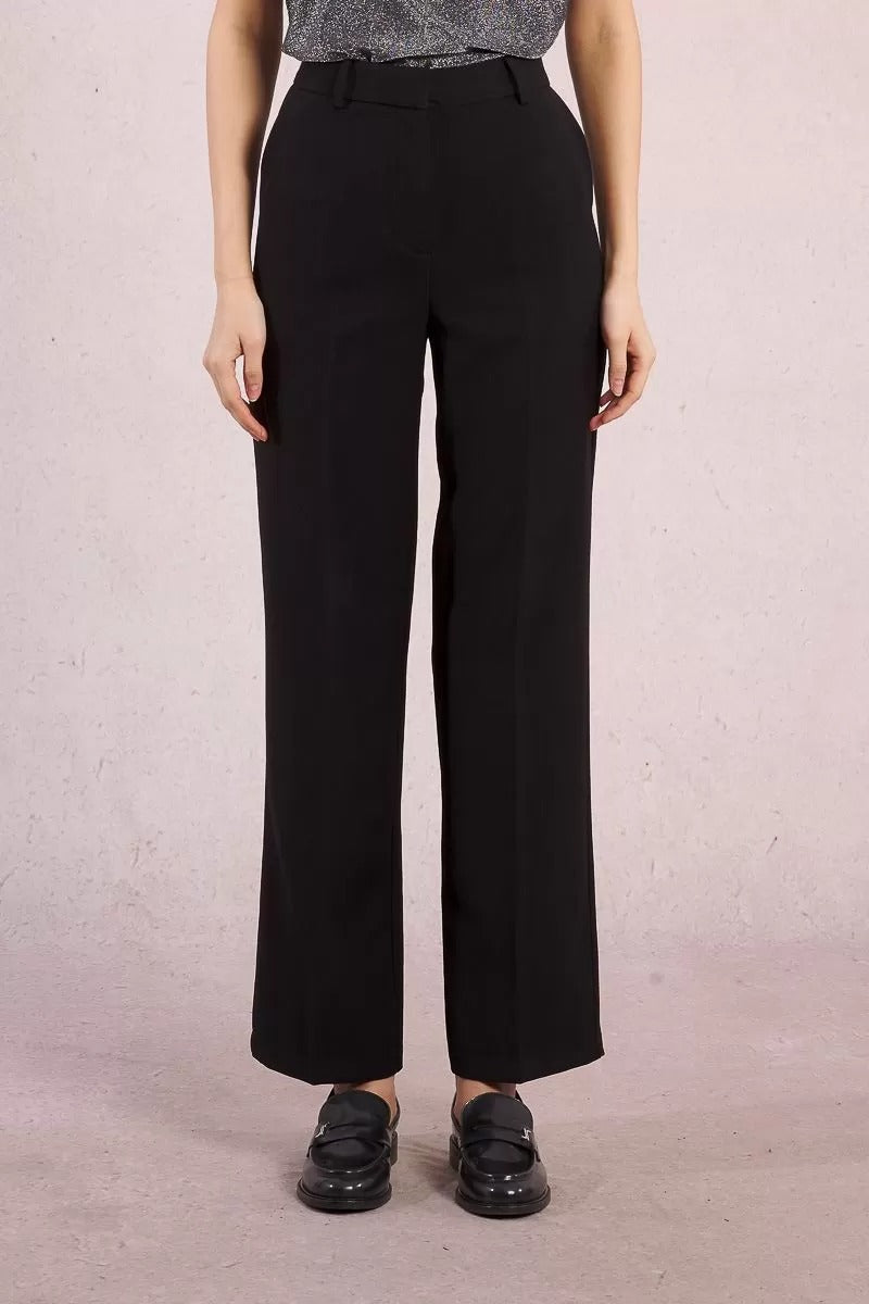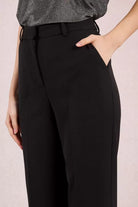 Pantalone donna sartoriali a vita media con chiusura con cerniera e gancio tasche laterali taglio svasato