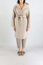 Vicolo Cappotto Imbottito con Cappuccio e Cintura Beige