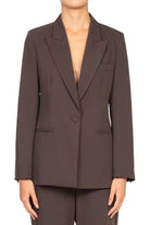 Giacca un petto caratterizzata da un bottone rivestito in tessuto che aggiunge un tocco di raffinatezza al design classico. Completamente foderata, garantisce comfort e una vestibilità ottimale. I taschini discreti e le spalline leggermente imbottite conferiscono struttura e definizione alla silhouette. Il fit è dritto, valorizzando la figura con eleganza e modernità. Un capo versatile e sofisticato, ideale per look sia formali che smart casual.