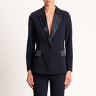 VICOLO Giacca marrone da donna, un capo dal carattere deciso e raffinato, ideale per distinguersi con eleganza. Realizzata in tessuto strutturato, presenta un taglio sartoriale con chiusura monopetto a bottone e revers a lancia in raso tono su tono che aggiungono luminosità e raffinatezza al design. Le tasche con pattina completano la silhouette classica, mentre la linea dritta garantisce una vestibilità impeccabile e versatile. La modella indossa una taglia S ed è alta 170cm. Si consiglia una stiratura a media temperatura. Stagione autunno inverno.