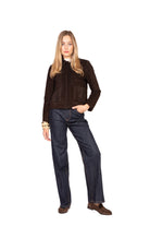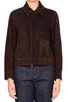Giacca in crosta di pelle caratterizzata da un design unico e ricercato, arricchita da frange decorative sui taschini frontali che aggiungono un tocco di movimento e personalità al capo. La chiusura con lampo è impreziosita da bottoni a clip, combinando praticità e stile in un dettaglio distintivo. Un capo dallo spirito contemporaneo e audace, perfetto per chi vuole farsi notare con eleganza e carattere.