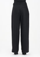 VICOLO Pantalone elegante nero da donna con gamba ampia e caduta fluida, perfetto per un look sofisticato e contemporaneo. Realizzato in tessuto a righe sottili con delicati punti luminosi, aggiunge un tocco di originalità e raffinatezza. Il modello presenta vita alta con passanti per cintura, pinces sul davanti che conferiscono volume e tasche laterali per maggiore praticità. Ideale da abbinare a camicie o blazer per outfit da ufficio o serate chic. La modella indossa una taglia S ed è alta 170cm. Si consiglia una stiratura a media temperatura. Stagione autunno inverno.