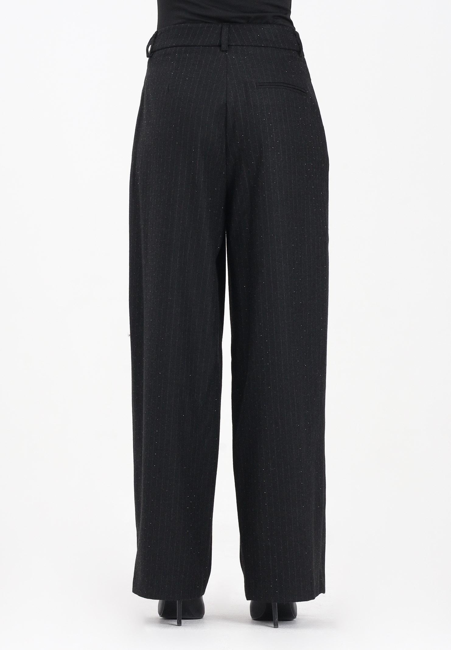 VICOLO Pantalone Elegante con Motivo Gessato e Strass Nero