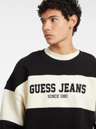 Guess Jeans Felpa Girocollo con Riga Orizzontale Beige