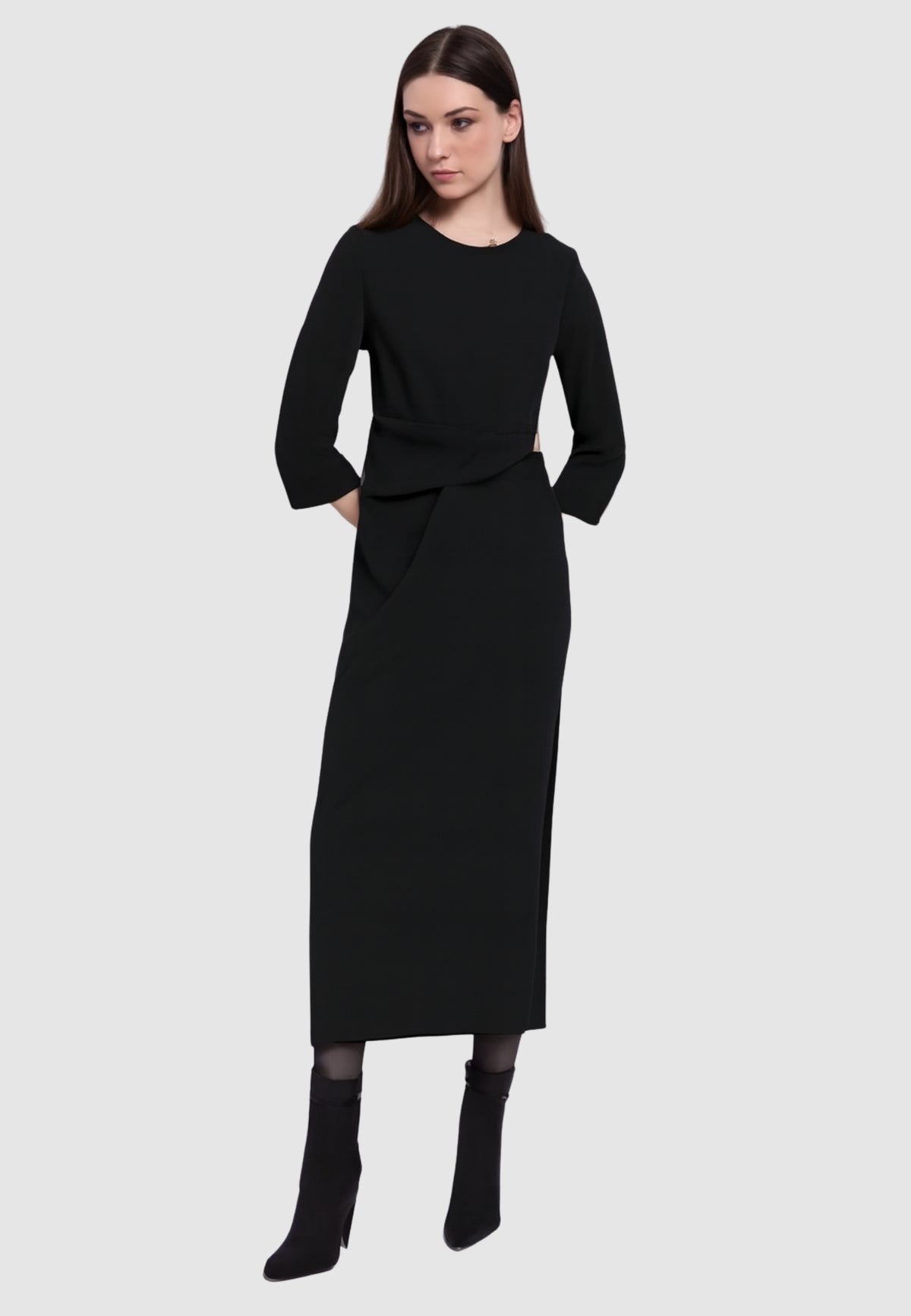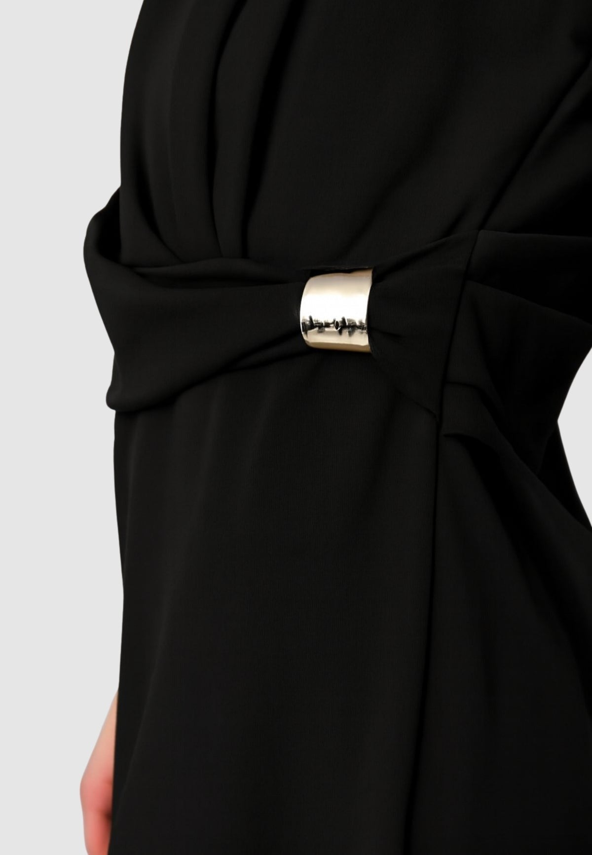 GaudI Abito in Twill Elasticizzato con Drappeggio Nero