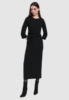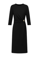 Abito in twill elasticizzato con drappeggio, dettaglio gioiello, spacco laterale e maniche a 3/4.