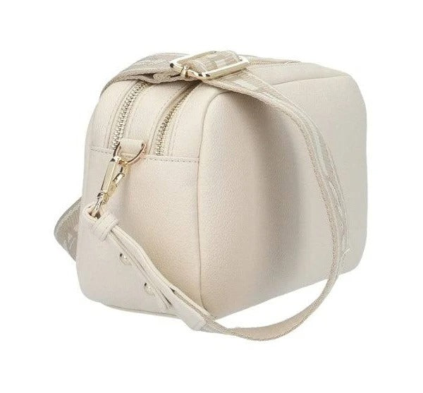 Dettagli: suddiviso in tre scomparti, 2 taschini (1 con zip) e tracolla jacquard removibile;