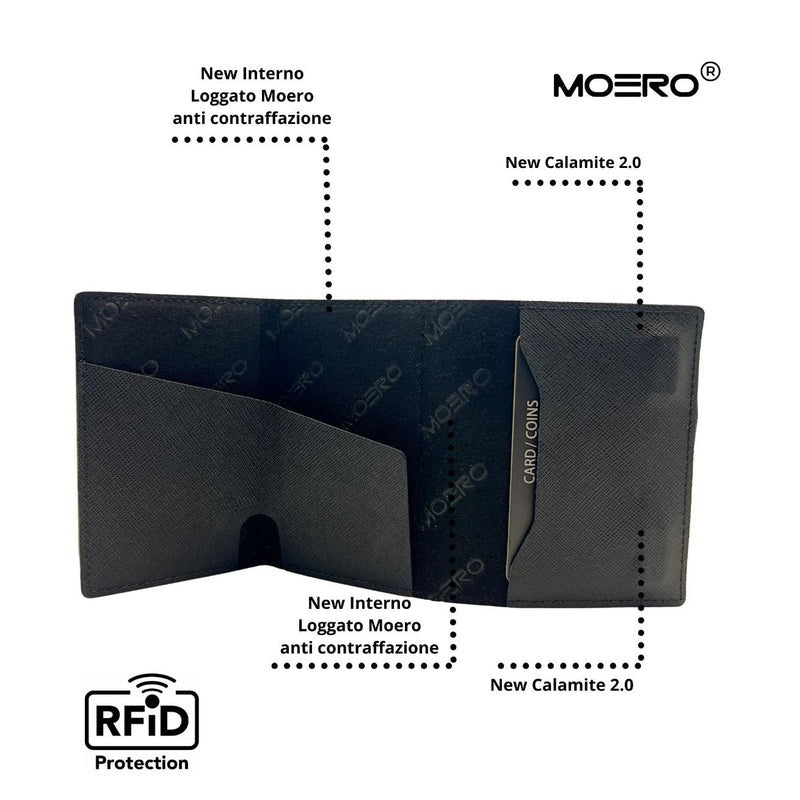 Contiene fino a 15 Carte, 5/6 per ogni portacarte e 3 nella tasca interna.