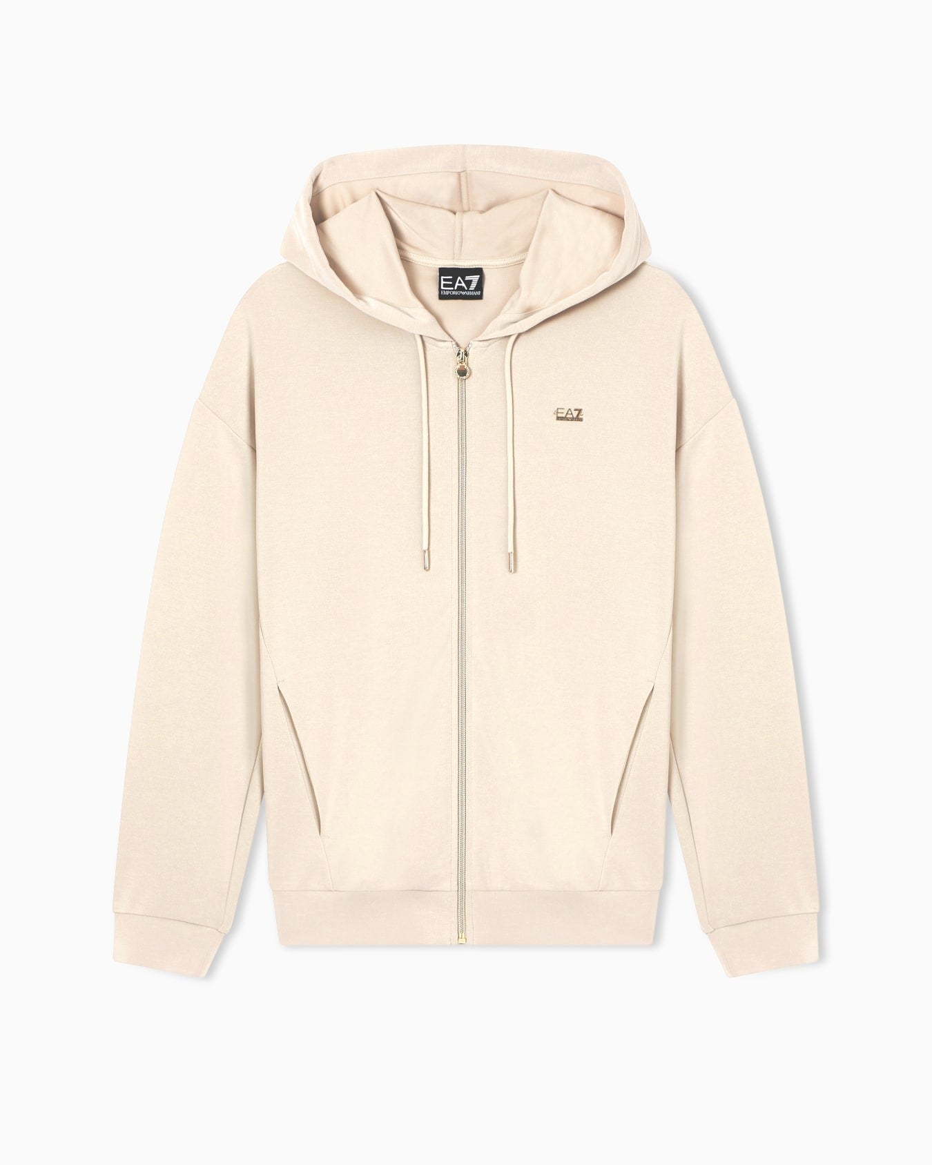 Armani EA7 Felpa con Cappuccio Core Lady in Interlock di Misto Modal Stretch Beige