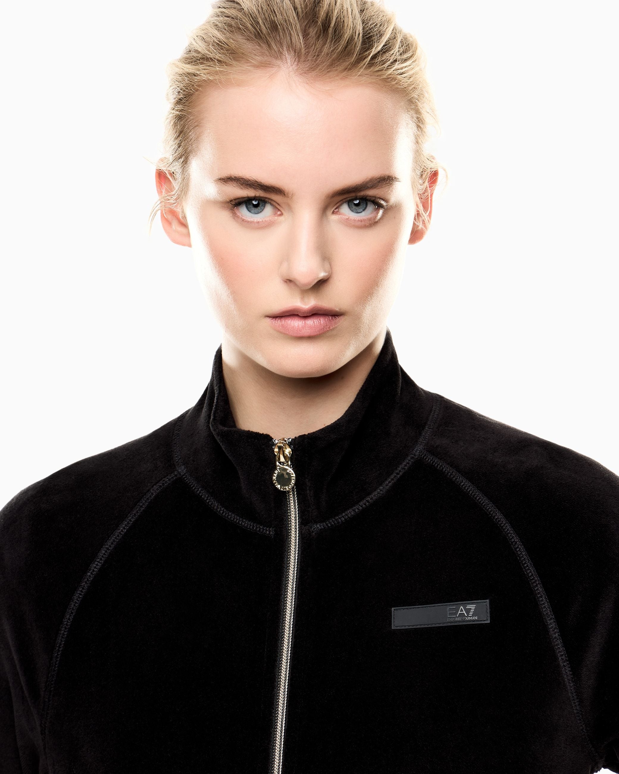 Felpa donna collo montante, chiusura con zip e due tasche laterali, realizzata in ciniglia di misto cotone stretch. Il modello, personalizzato dal patch sul petto, è impreziosito dal logo ricamato EA7 Emporio Armani sul retro che completa con distinzione il capo. La linea Athletic Velour propone capi realizzati nell'iconico tessuto della maison reinterpretato nello stile EA7. Colori pieni e intesi caratterizzano l'intera proposta, impreziosita dal logo ricamato.