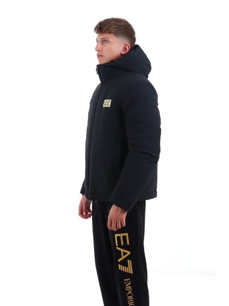 Armani EA7 Giacca con Cappuccio Gold Label in Nylon Stretch Nero