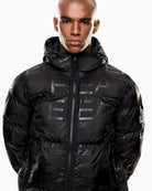 Armani EA7 Giubbino Imbottita con Cappuccio Stampa Logo All-Over Nero