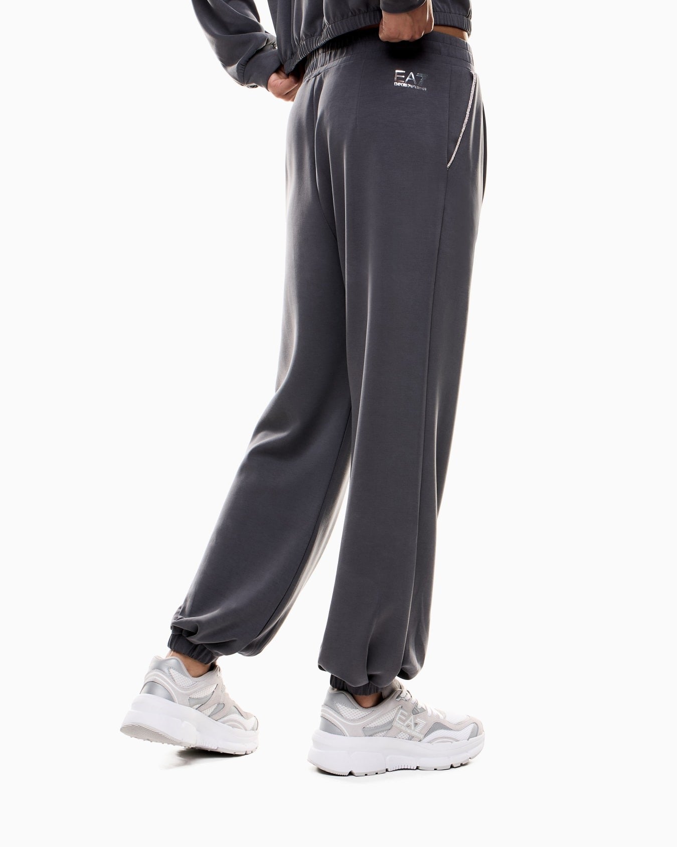 Armani EA7 Pantaloni jogger Precious in Interlock di Modal Stretch Grigio