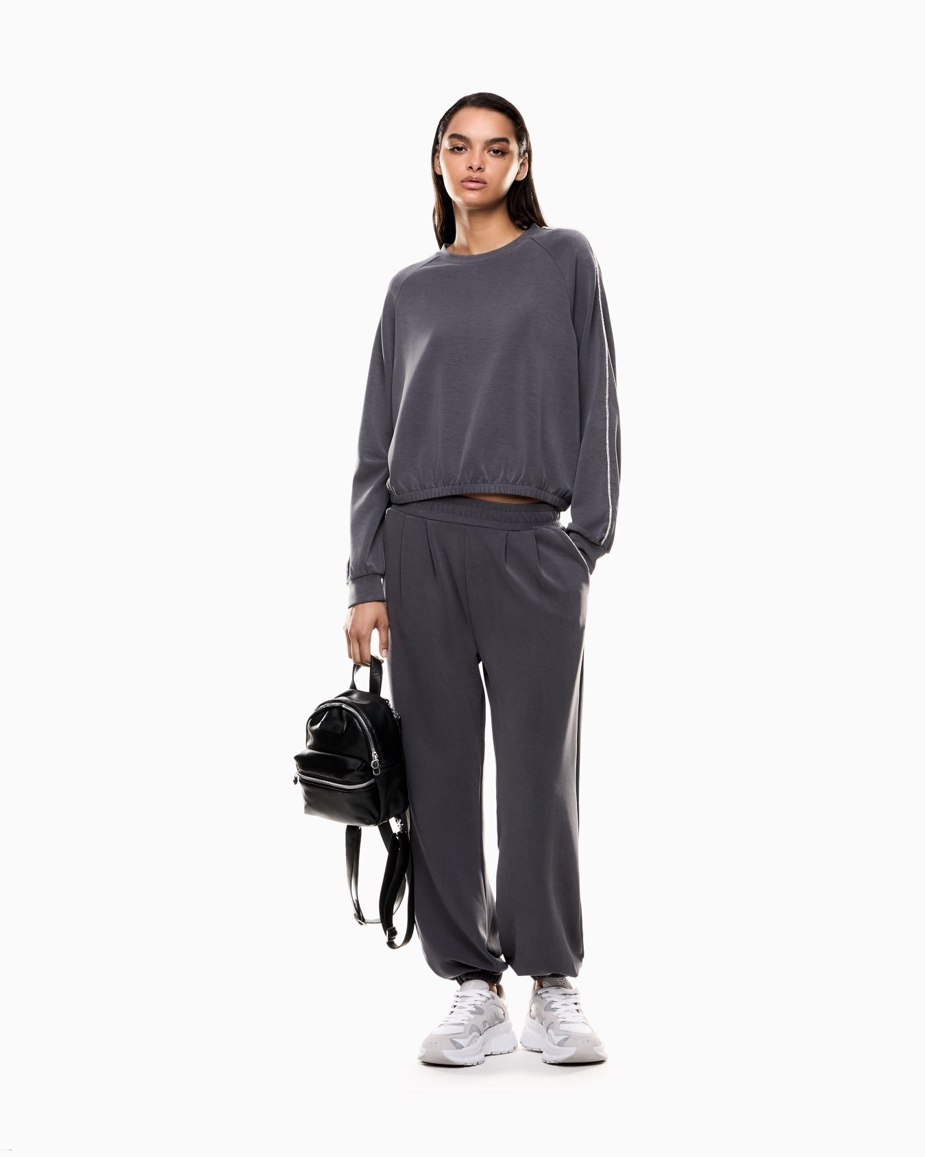 Pantalone donna Linee essenziali e pulite per questi pantaloni jogger caratterizzati dal dettaglio strass che profila le tasche laterali donando un tocco luminoso. Un modello femminile in interlock di modal elasticizzato, ideale per assicurarti comfort sia durante le tue sessioni di allenamento sia nei momenti di relax, perfetto da abbinare alle t-shirt di collezione per creare total look versatili e di tendenza.