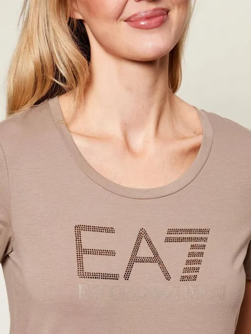 T-shirt realizzata in morbido jersey di cotone elasticizzato. Il modello presenta maxi logo EA7 realizzato con micro borchie , che aggiunge un tocco distintivo al capo. Perfetta per l'allenamento o il tempo libero, offre comfort e stile in ogni situazione.