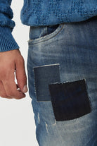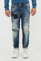 Jeans uomo modello cinque tascche a tratti scambiato e qualche strappo