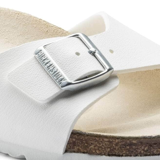 La pianella BIRKENSTOCK Madrid è il primissimo modello della grande famiglia BIRKENSTOCK e, a ragione, è considerata un vero classico. Lanciata mezzo secolo fa sul mercato come “pianella da ginnastica", questo modello a cinturino unico dalle linee essenziali è diventato ora una vera icona di moda. La tomaia è in materiale sintetico Birko-Flor® dermoaffine e resistente.
