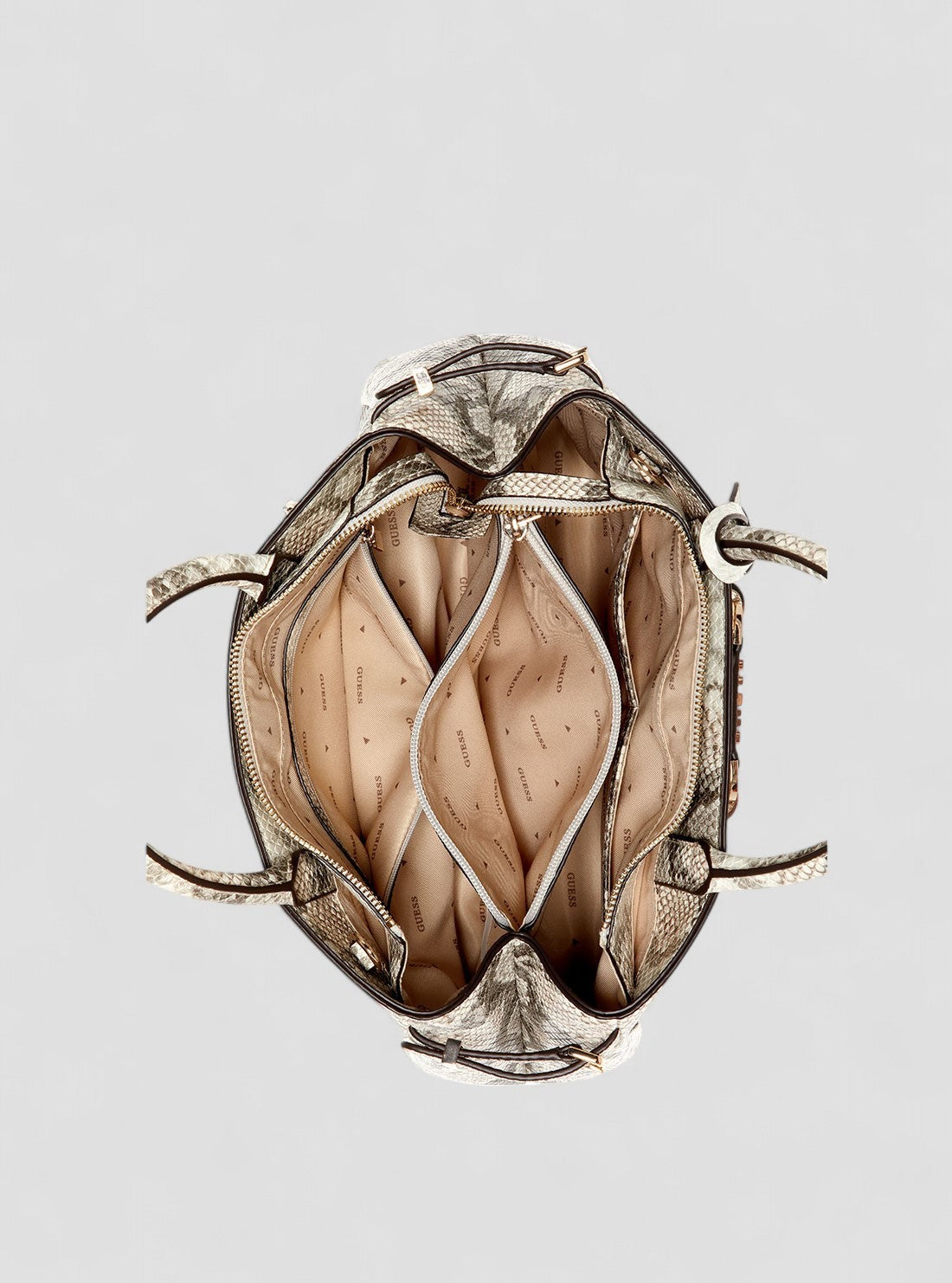 Guess Borsa a Mano con Tracolla di Lusso Lefia Stampa Serpente Bianco