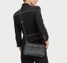 Tasca centrale con zip, fodera interna personalizzata, tracolla regolabile e removibile.
