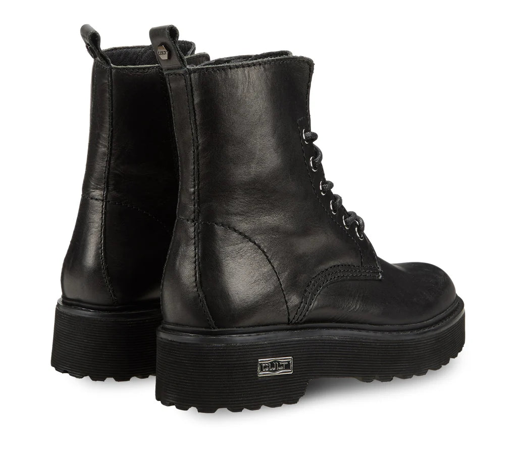 Intramontabili gli anfibi donna modello Slash firmati Cult per questa stagione. In pelle nera con chiusura a stringhe e suola rinforzata, questi anfibi saranno un ottimo compagno di viaggio. Altezza suola 5 cm
