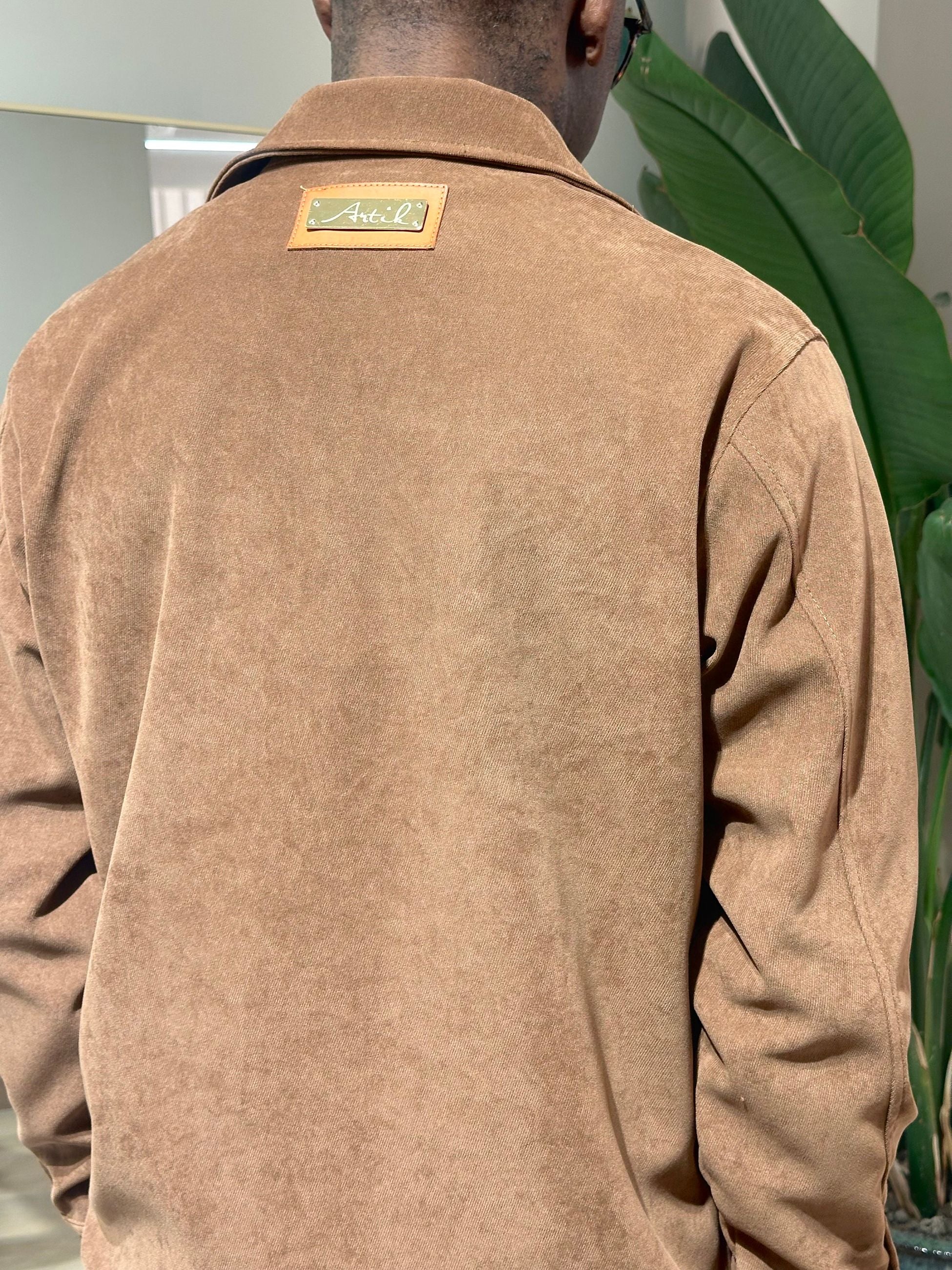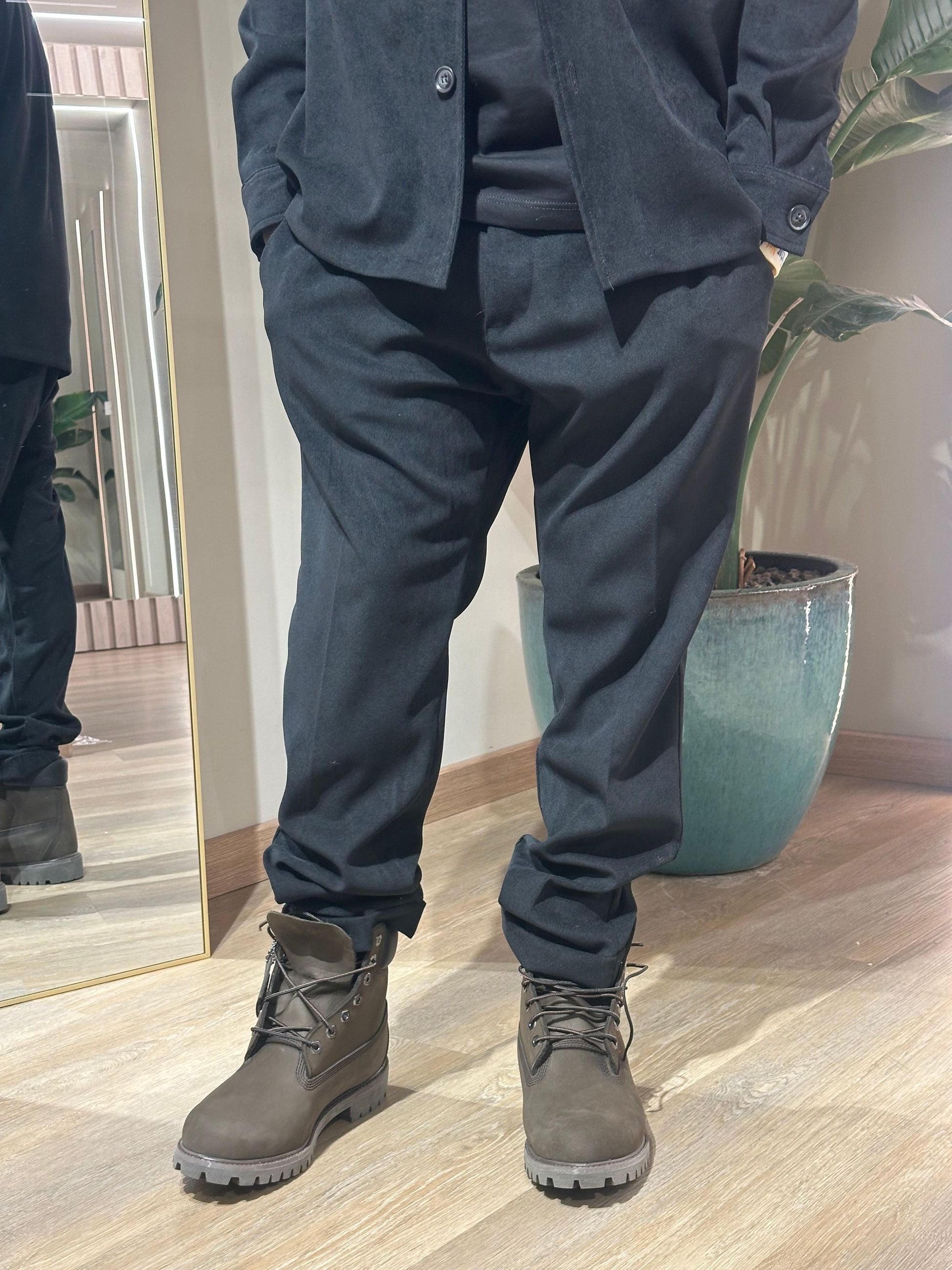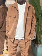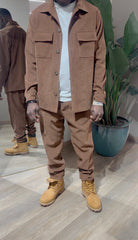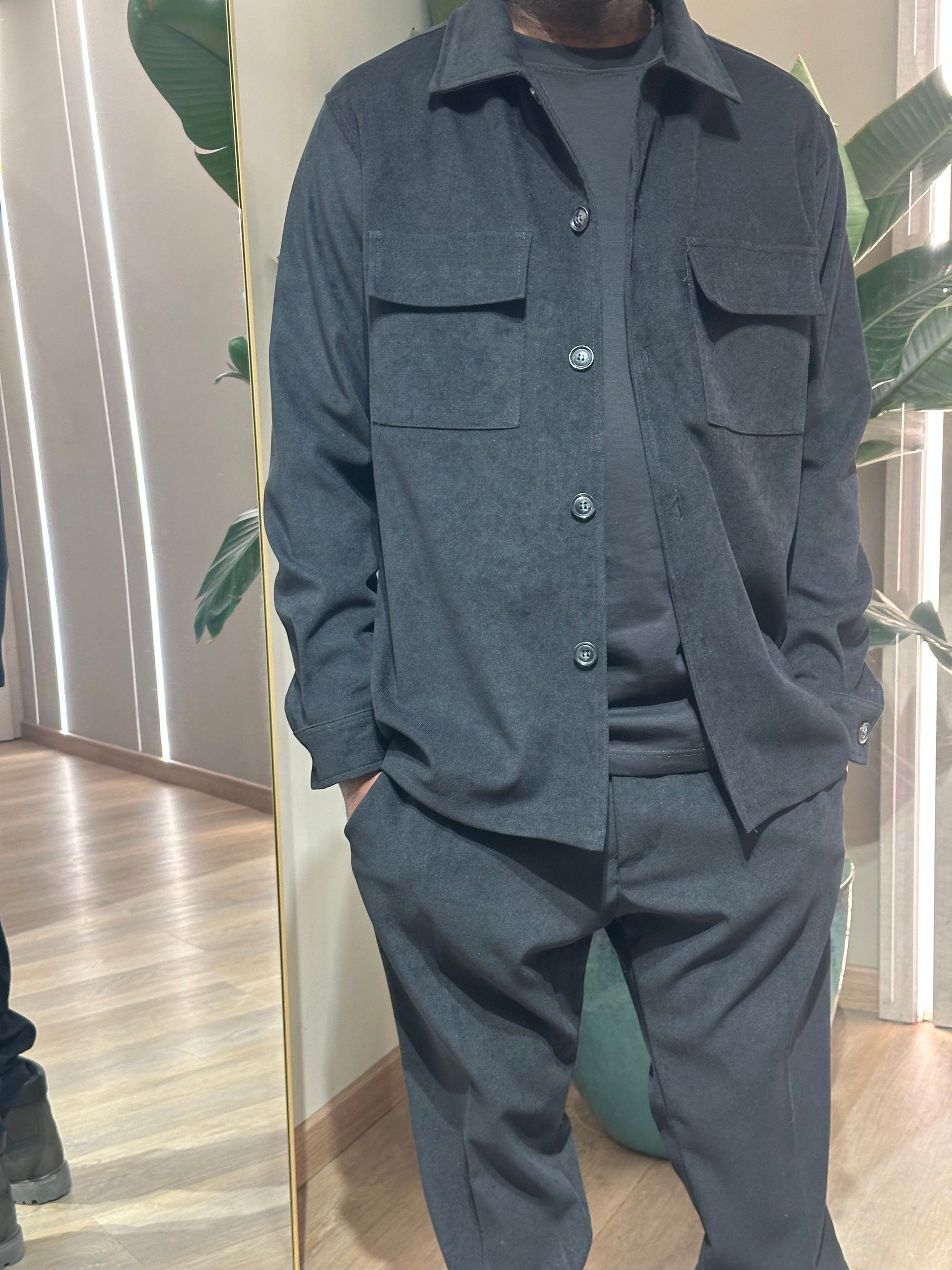Coordinato uomo in velluto con bottonI collo revers con tasche sul petto con patta