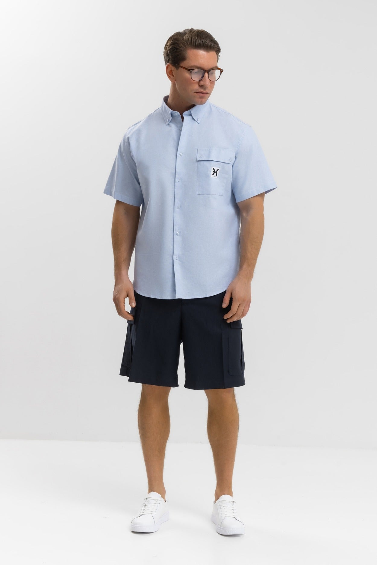 Camicia uomo collo classico con una tasca sul petto chiusura con bottoni