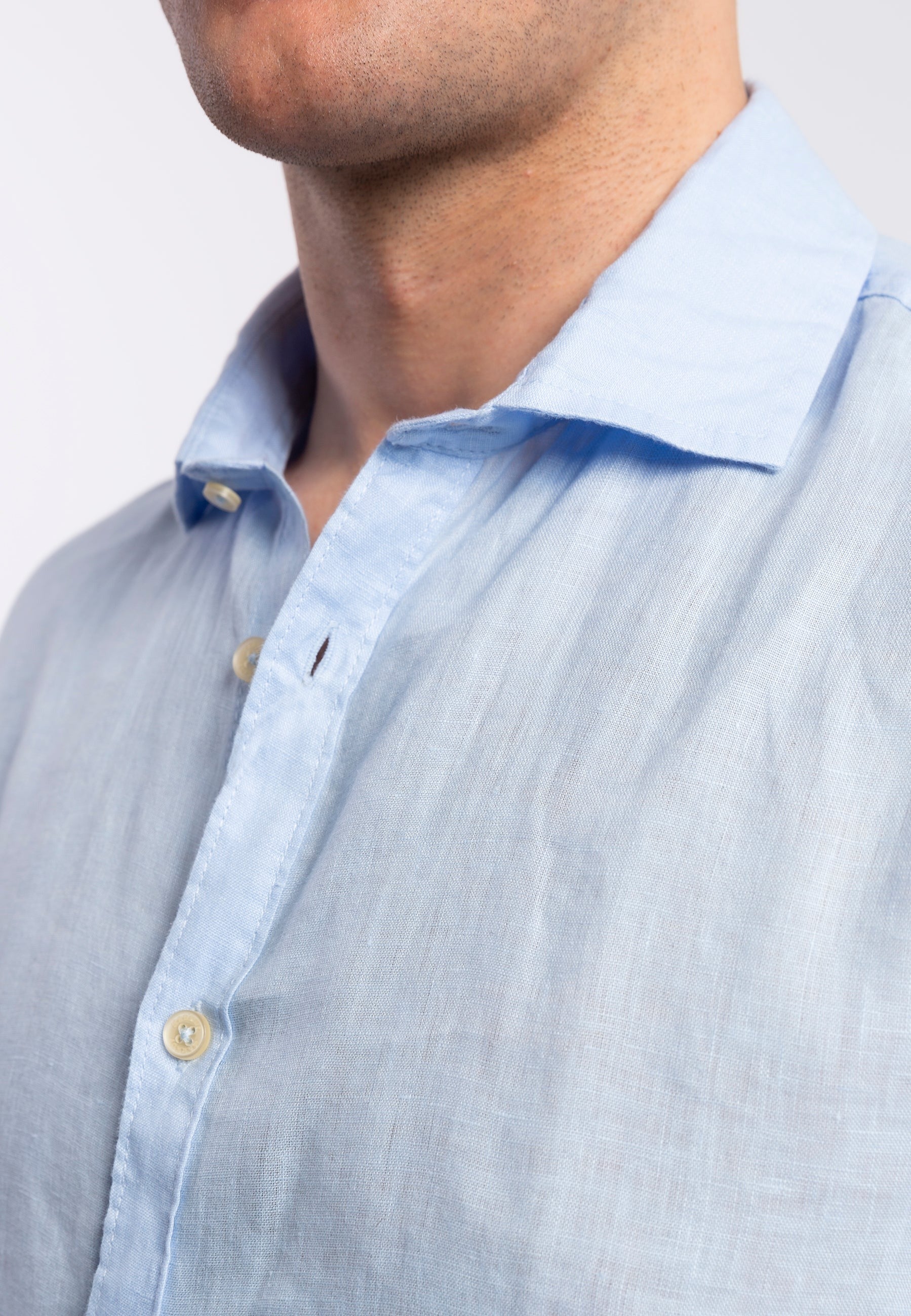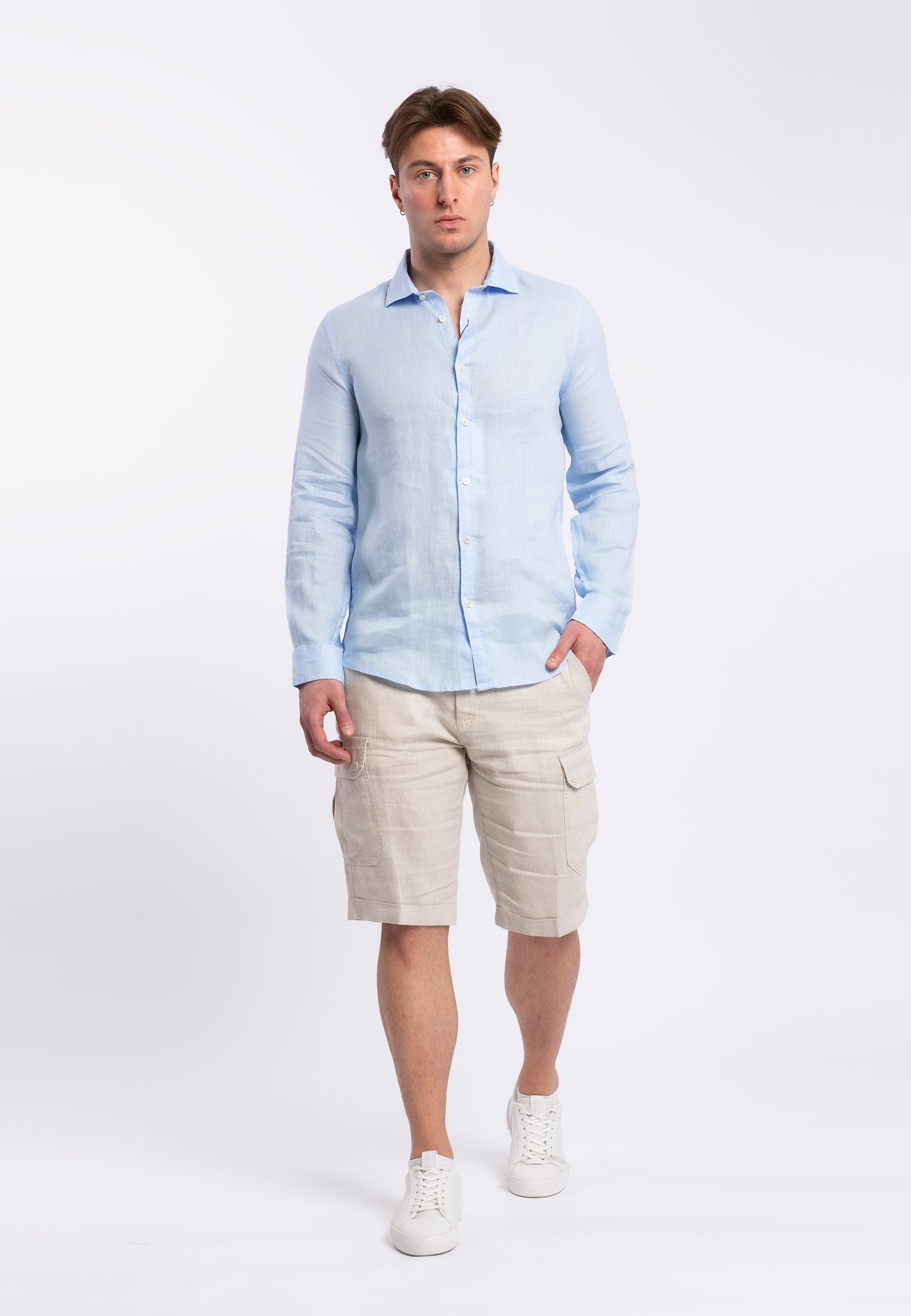 Camicia uomo realizzata in puro lino e ha maniche lunghe. Il tessuto leggero e traspirante offre un comfort duraturo e una sensazione di freschezza durante le giornate calde. Elegante e resistente, questa camicia è perfetta per ogni occasione.