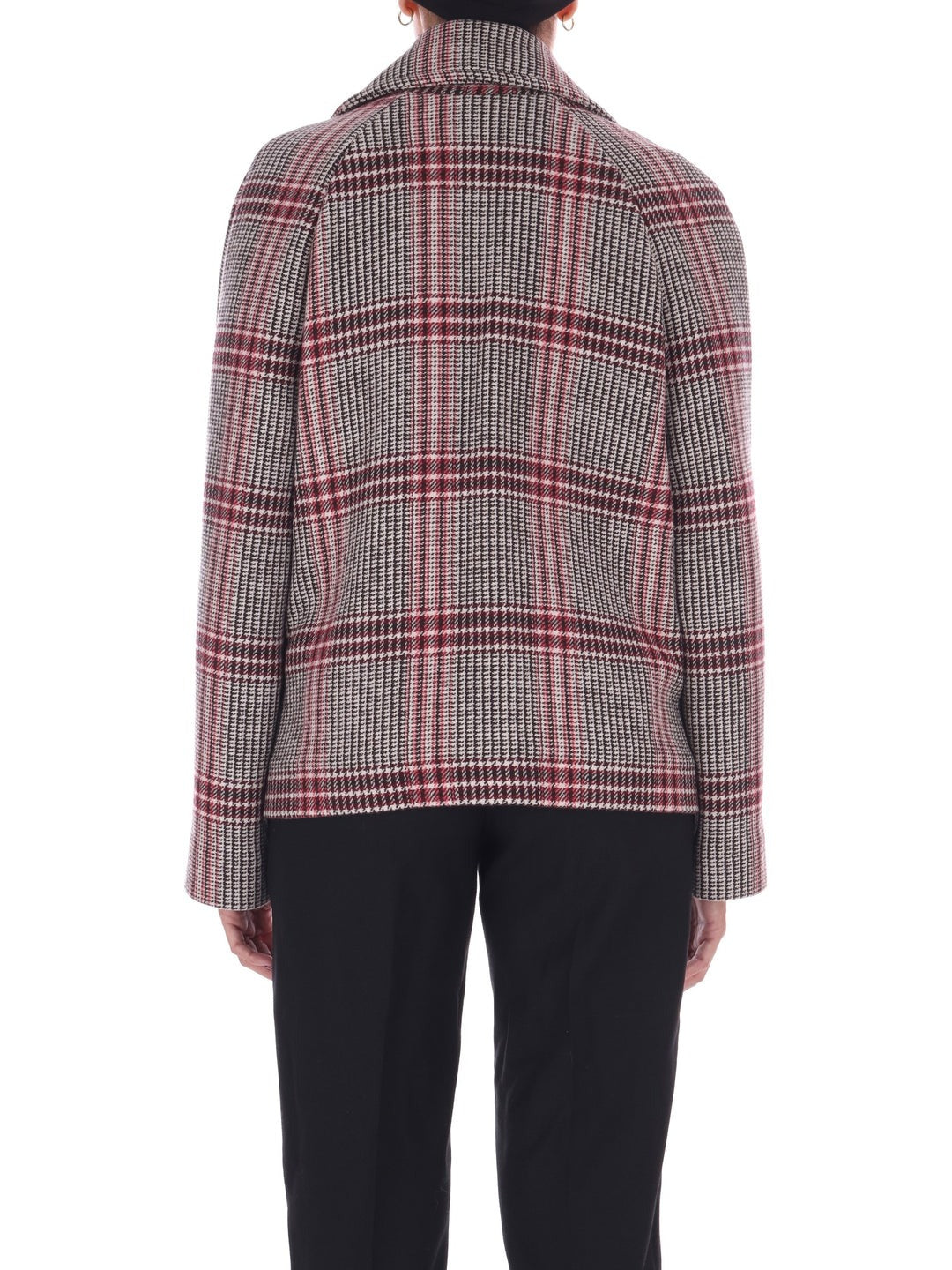 Esalta il tuo stile con il giaccone corto sfoderato fantasia check doppiopetto! Il suo design a collo a revers dà un tocco di classe, mentre le tasche laterali con pattine aggiungono funzionalità. La vestibilità oversize ti farà sentire comoda e alla moda
