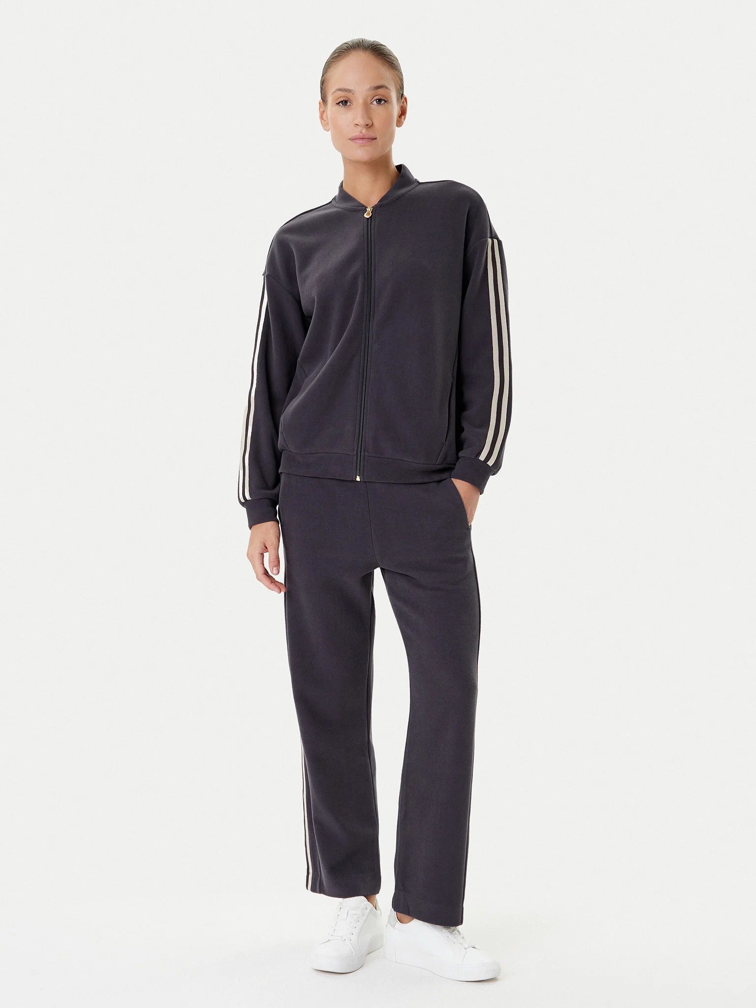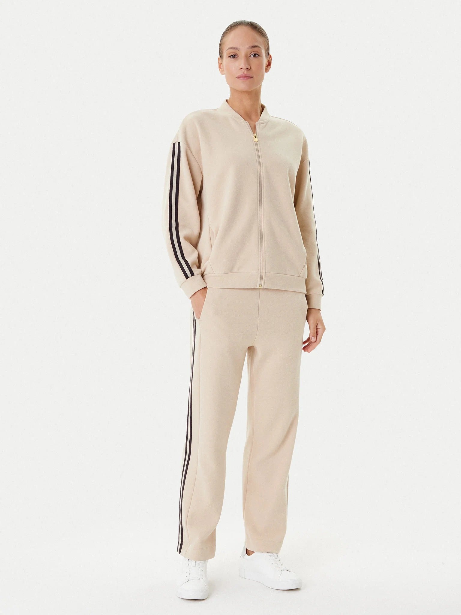 Felpa donna con cerniera girocollo maniche lunghe con bande laterali