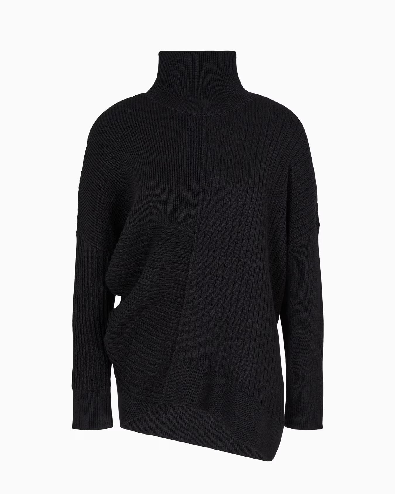 Armani Exchange Maglione Pullover Asimmetrico a Collo Alto