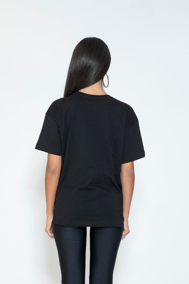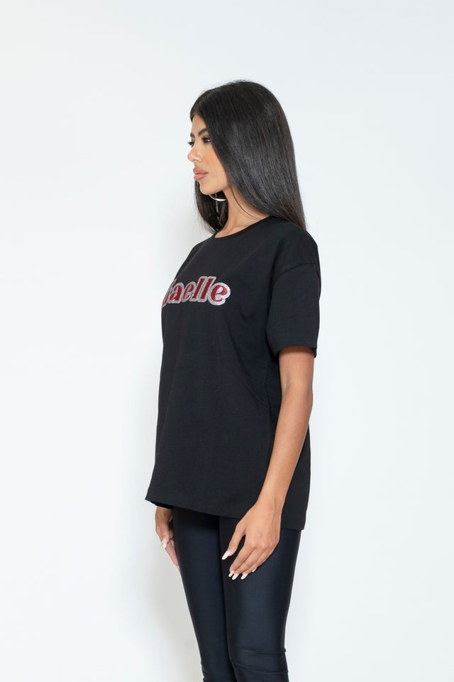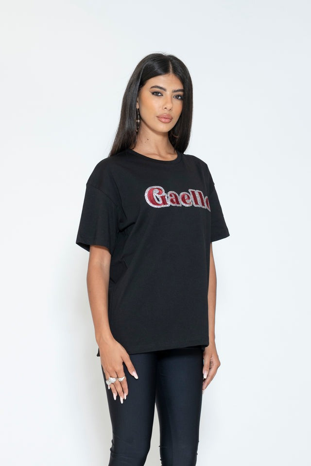 Gaelle Paris T-shirt con ricamo glitterato del Logo Nero