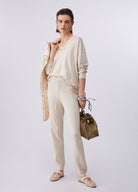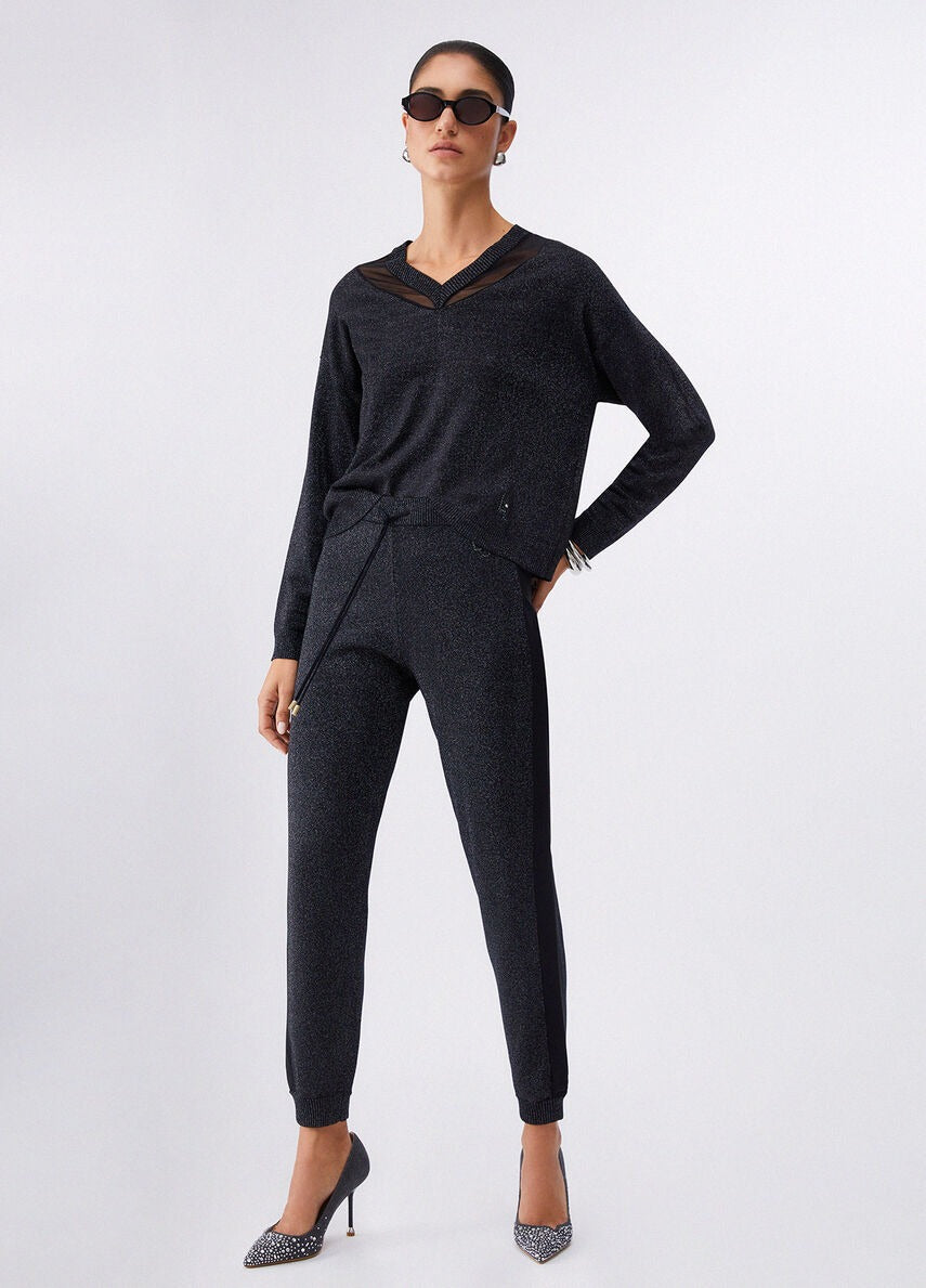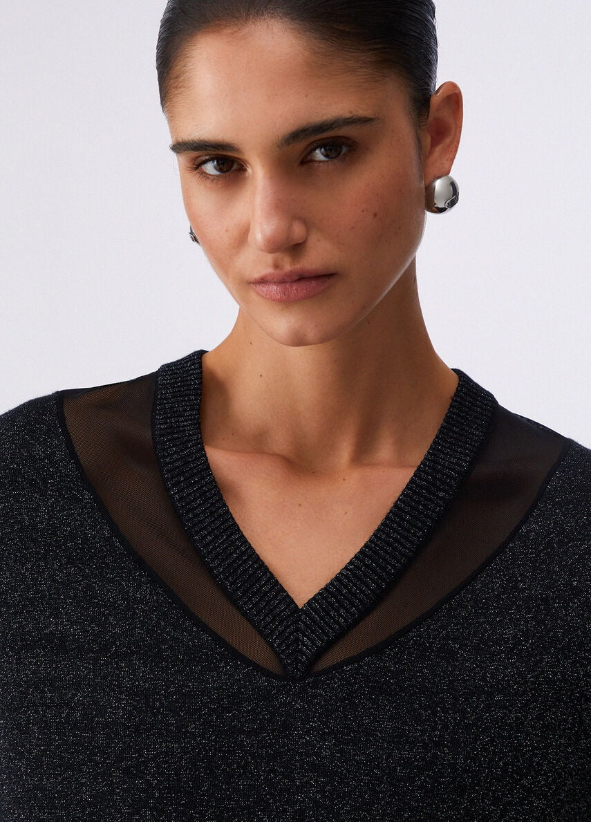 Composizione: Tessuto principale: 67% Viscosa, 14% Poliammide, 13% Poliestere, 6% Poliestere metallizzato| Tessuto secondario: 93% Poliammide, 7% Elastan