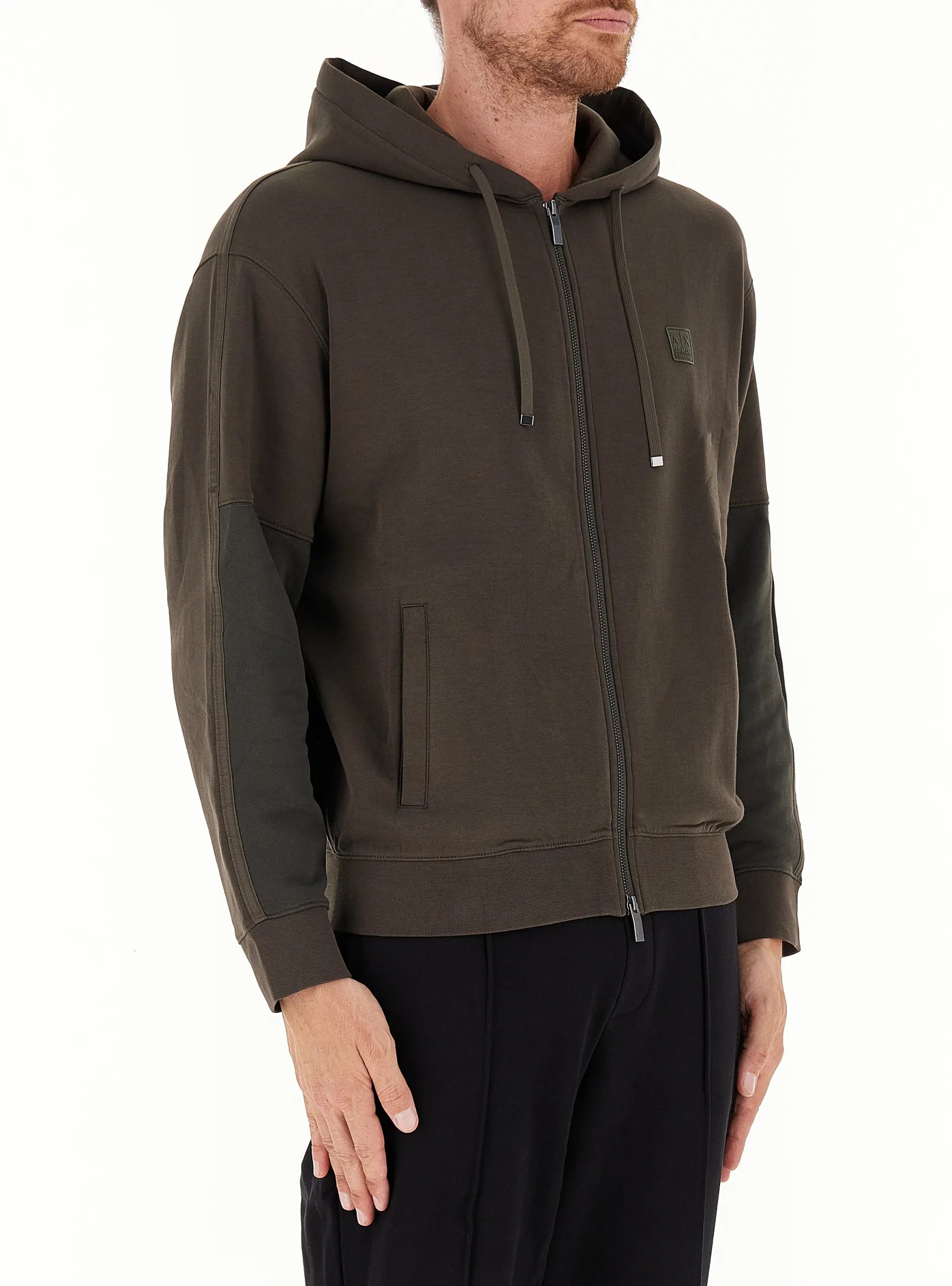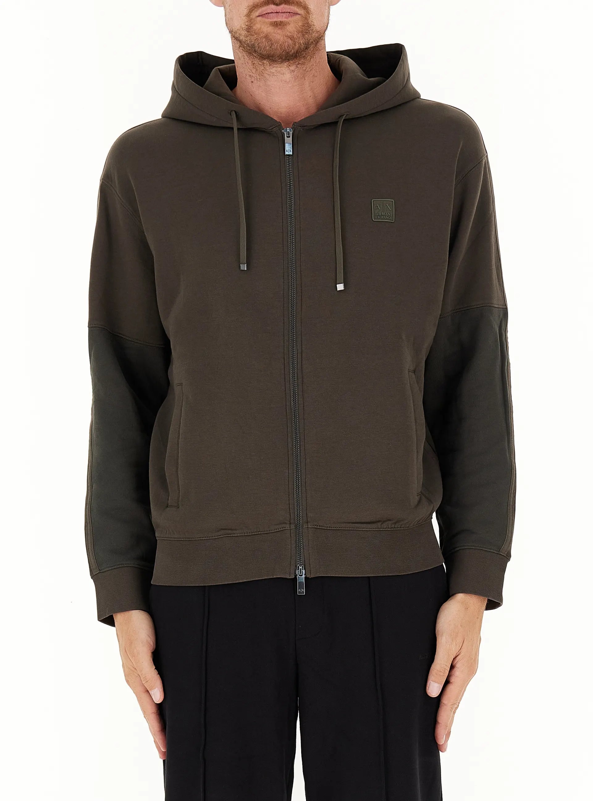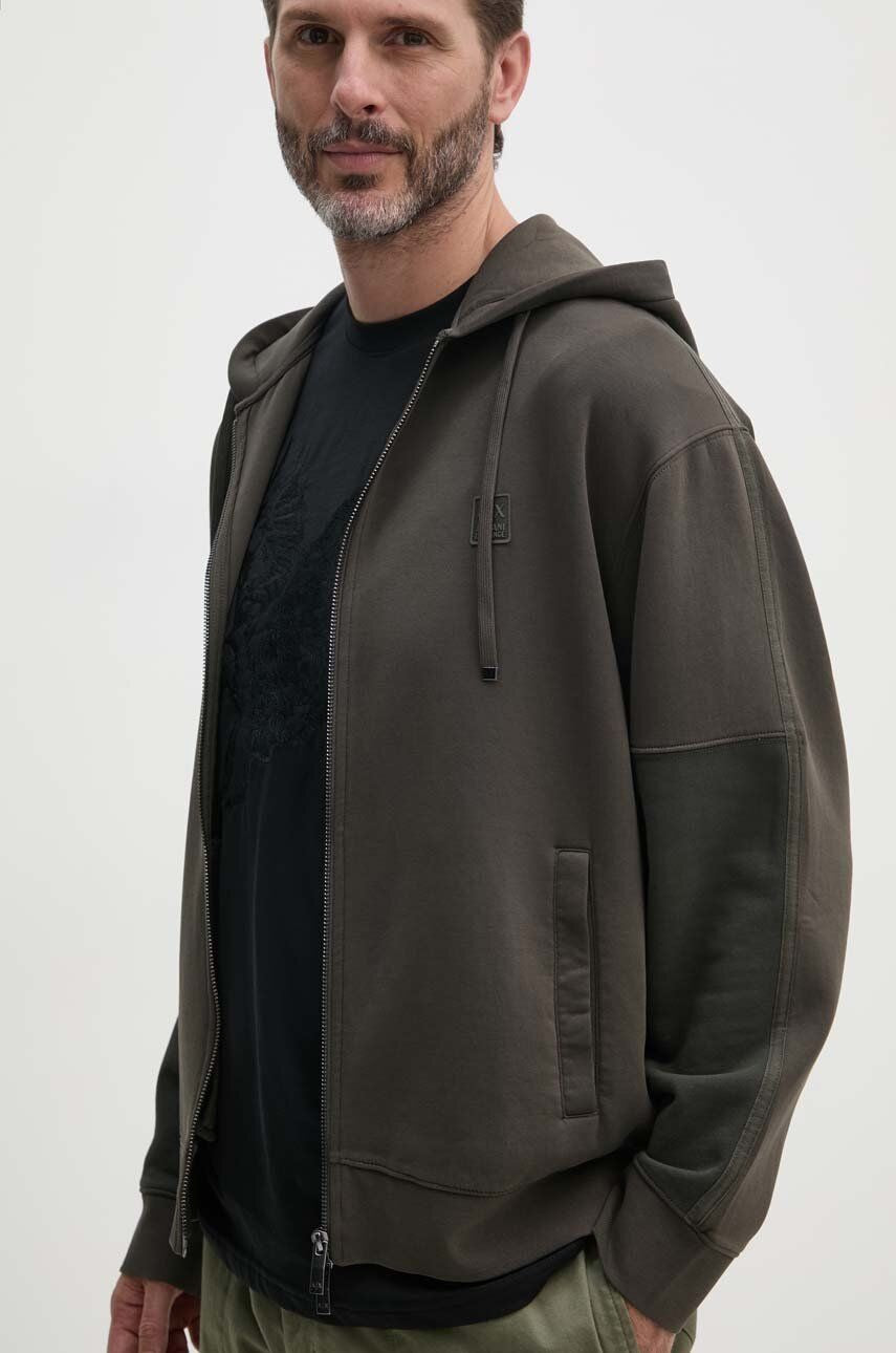 Armani Exchange Felpa con Cappuccio con Maniche a Contrasto Verde Militare
