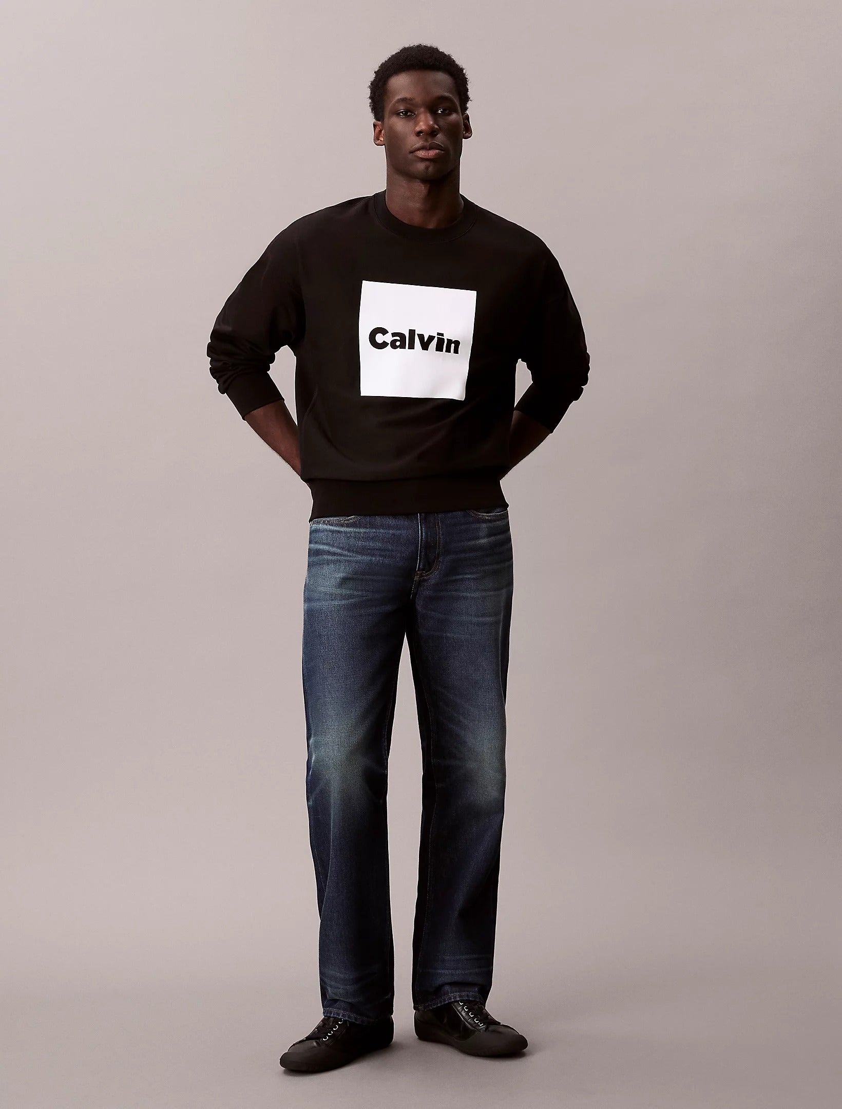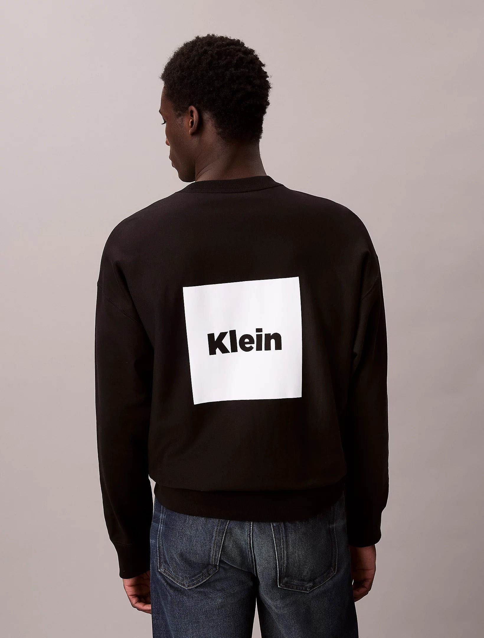 Calvin Klein Felpa con Logo Grafico in Pile Premium dal Taglio Relaxed Nero/Bianco