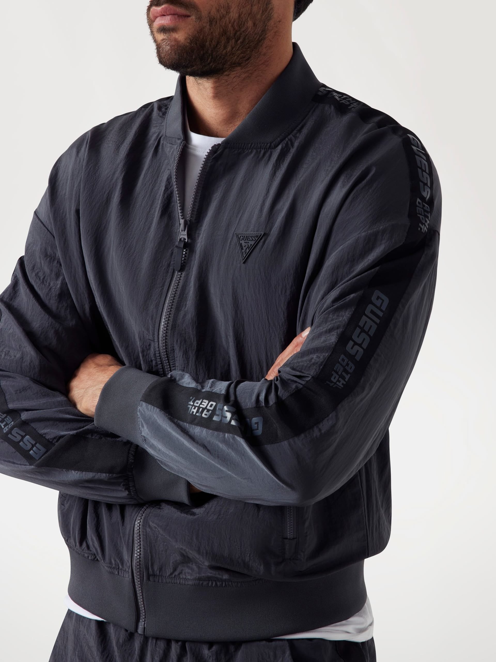 Guess Active Felpa in Nylon con Cerniera Intera Grigio