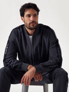 Felpa in nylon effetto stropicciato. Presenta un collo rialzato e cerniera frontale completa, esaltata da tasche con cerniera e maniche lunghe con spalle scese e fasce laterali. I dettagli a costine aggiungono un tocco sofisticato. Perfetta per un look casual ed elegante, ideala per un pomeriggio urbano. Realizzata in nylon, offre comfort e stile contemporaneo.