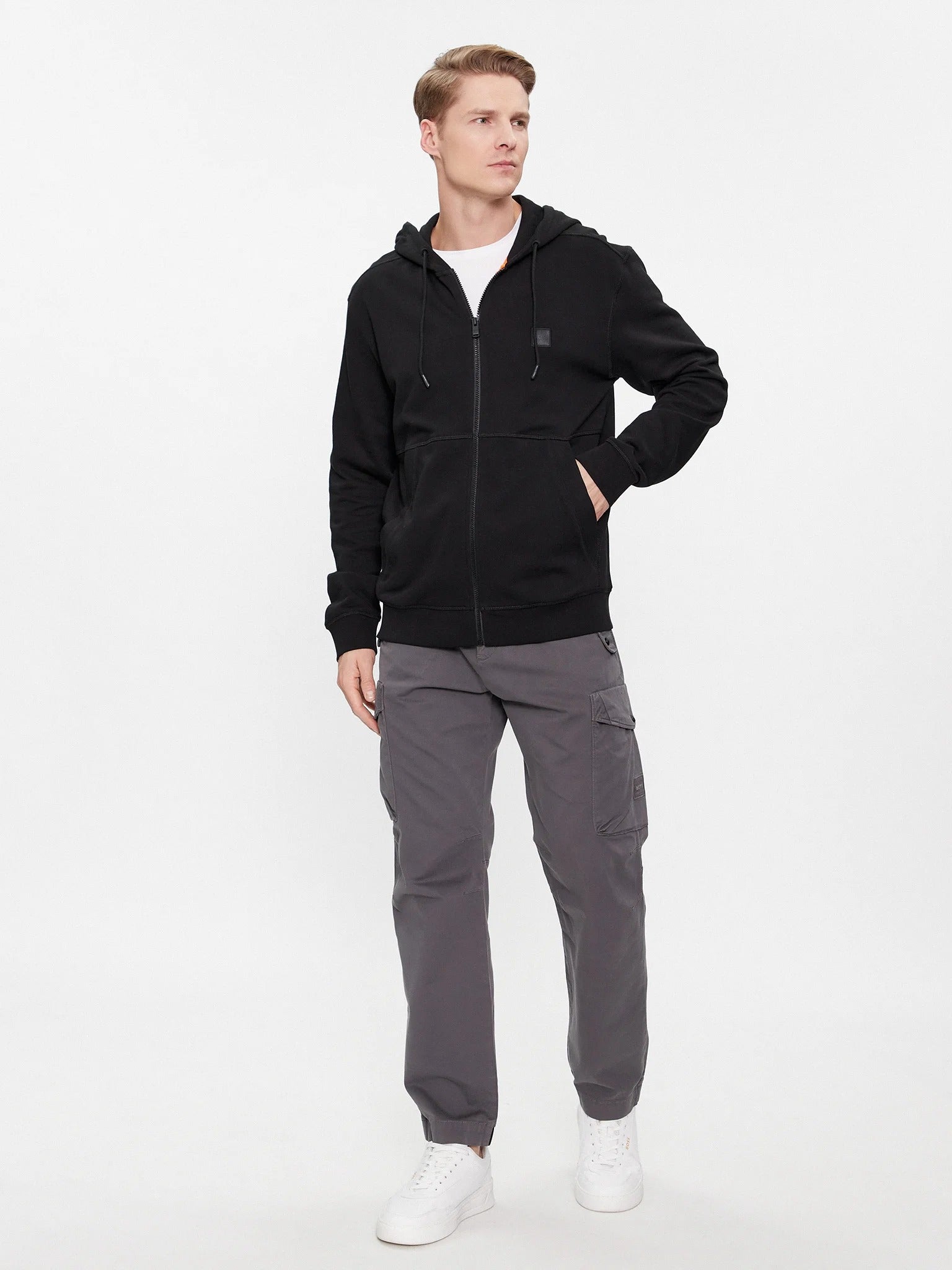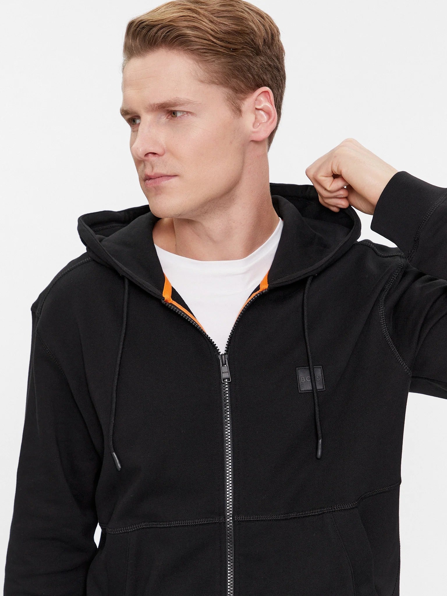 Hugo Boss Felpa con Cappuccio in Terry di Cotone con Cerniera Toppa con Logo Tono su Tono Nero