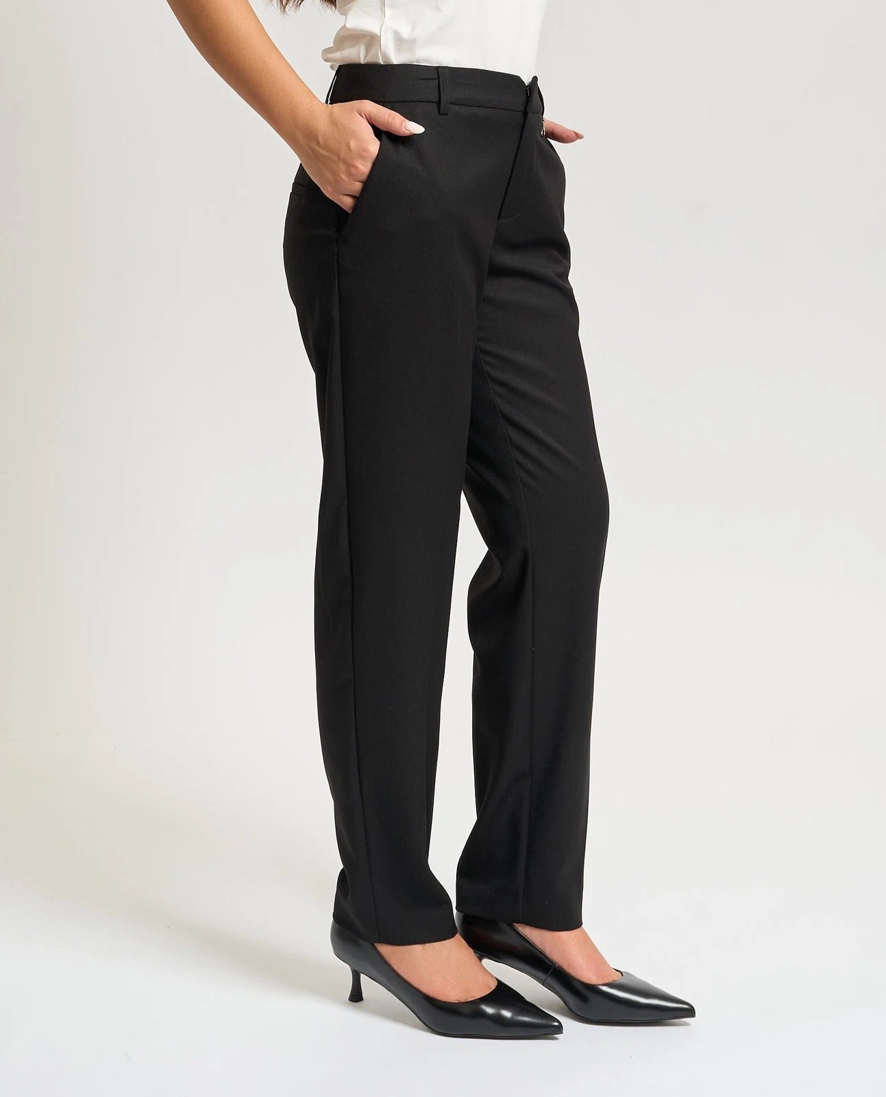 Gaelle Paris Pantalone Dritto in Fresco Lana Nero