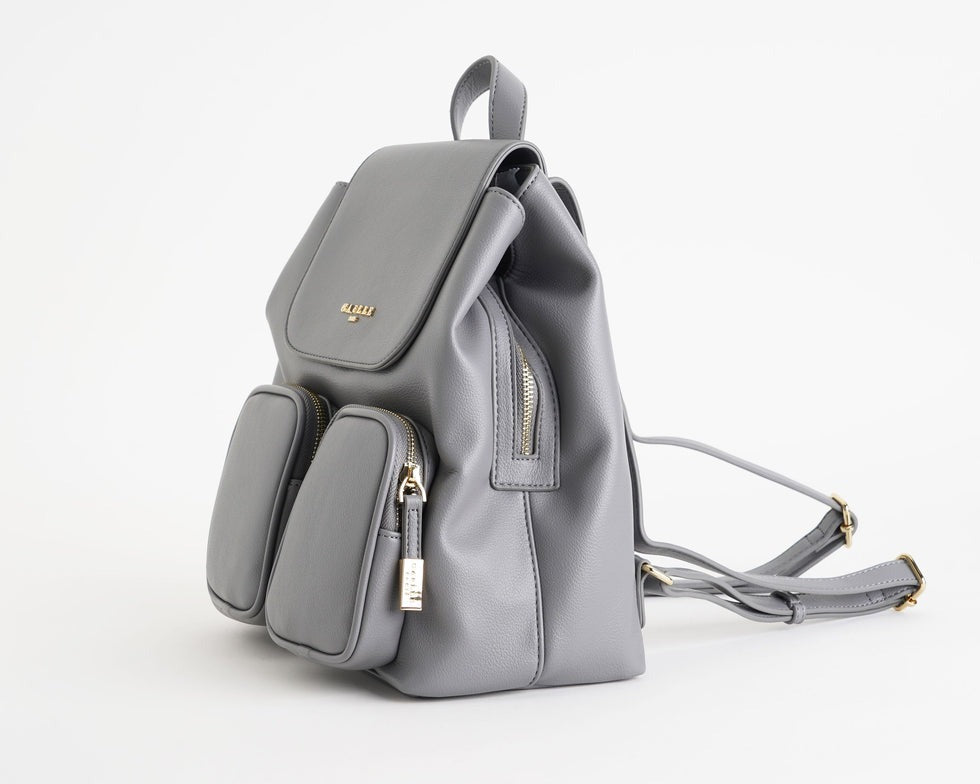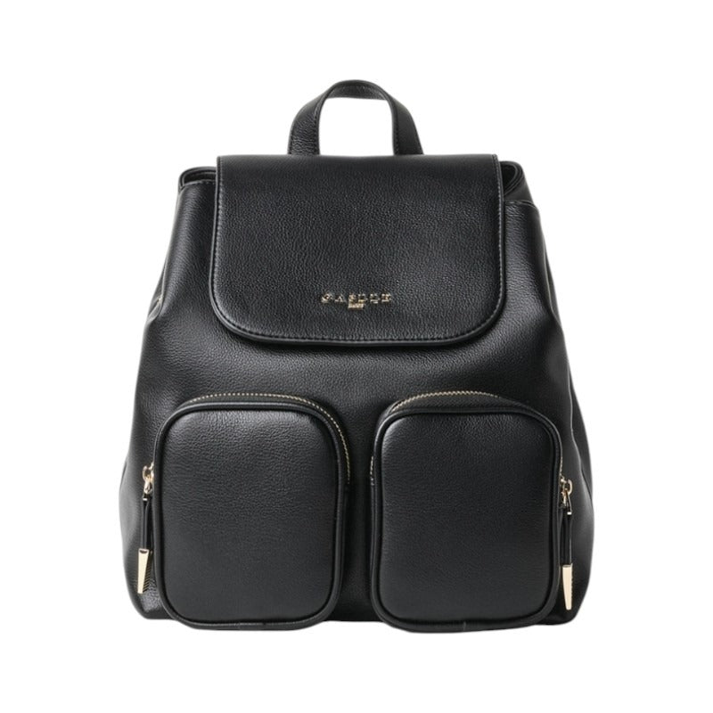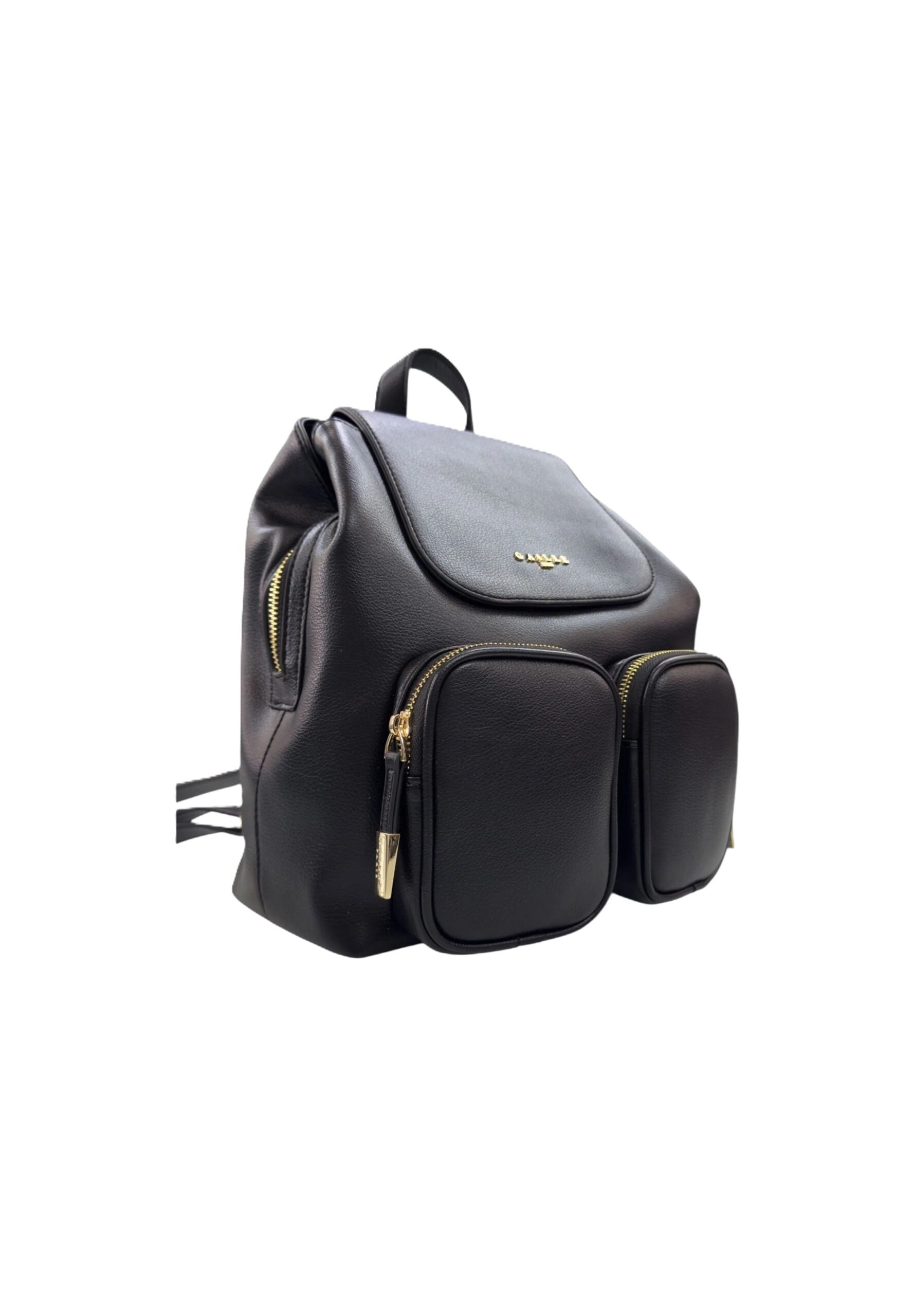 Zaino donna con tre scomparti il centrale con cerniera due tasche anteriori spallacci regolabile chiusura con patta