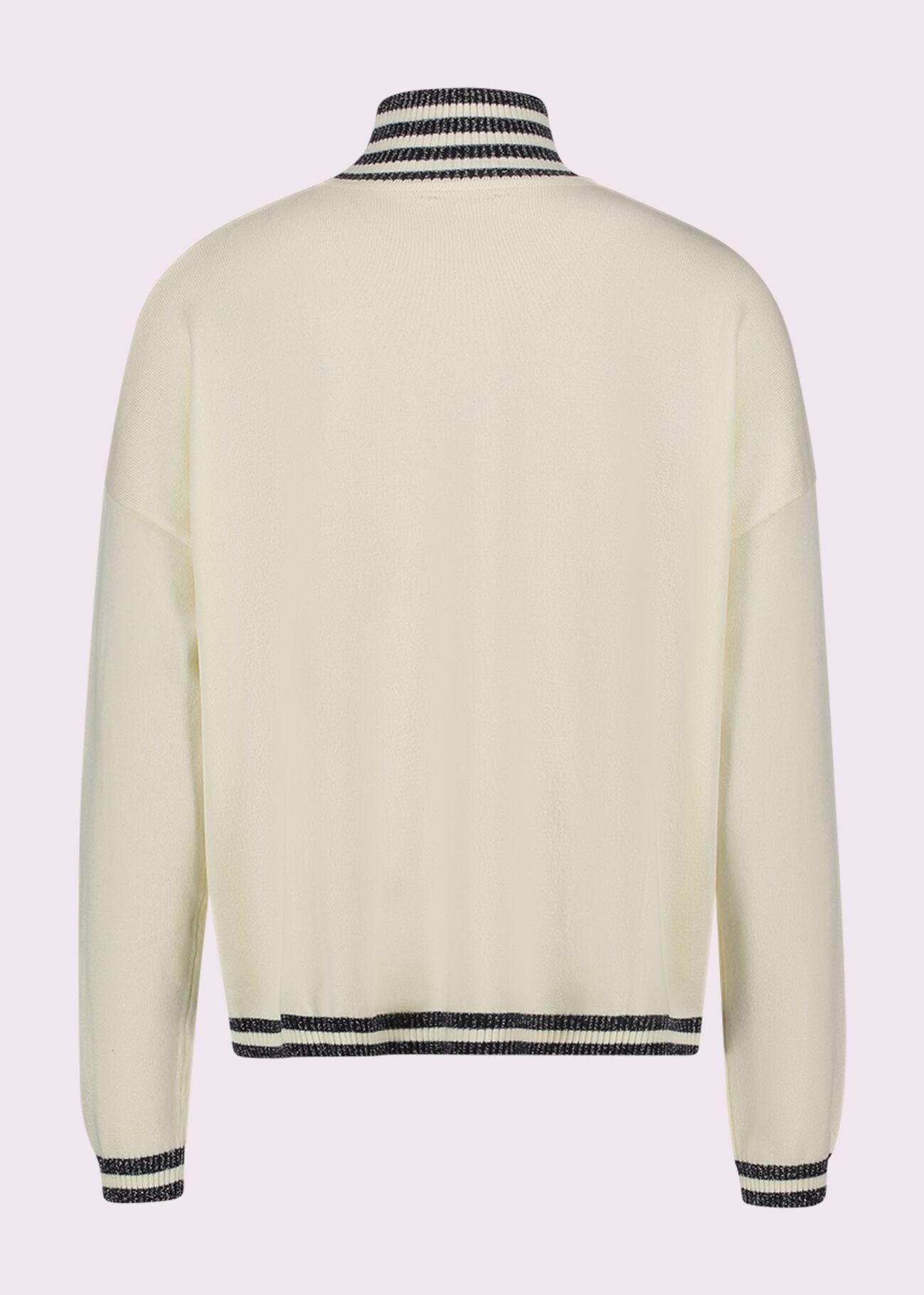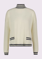 la maglia in morbido filato di misto lana con collo alto e motivo a righe a contrasto. Per un look sporty-chic che combina comfort e stile.