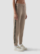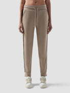 Pantalone Joggers in tessuto scuba tecnico con bande elastiche laterali con logo all-over. Linea dritta con vita elasticizzata e coulisse regolabile.