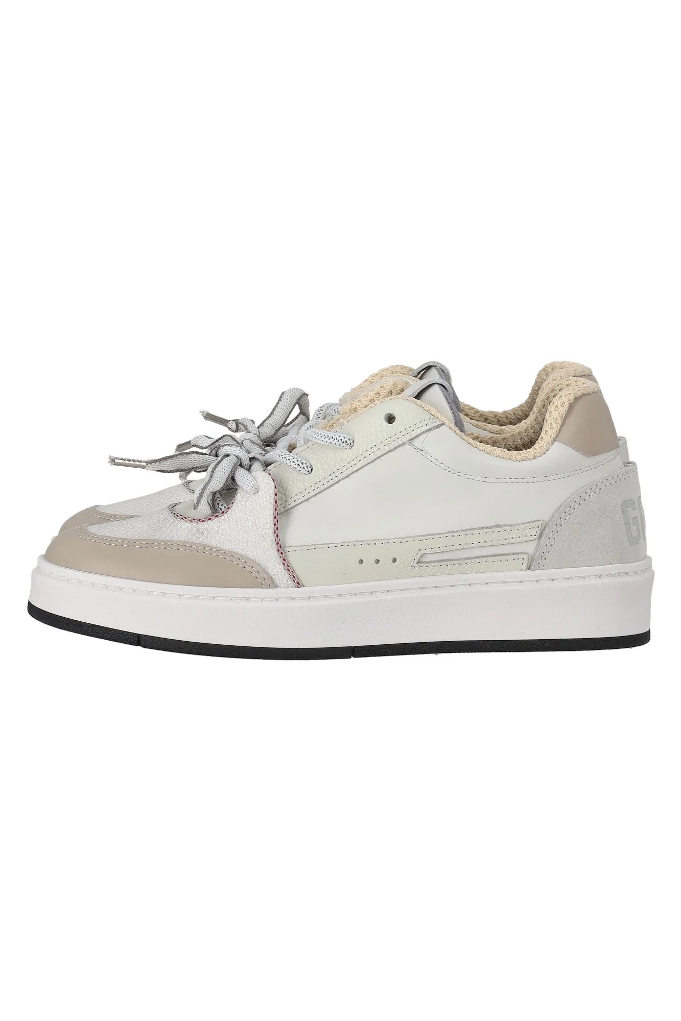 GCDS Sneakers da uomo dallo stile contemporaneo, perfette per un look urbano e dinamico. La tomaia combina materiali diversi come pelle, tessuto tecnico e suede. Il logo GCDS è impresso sul tallone in suede, aggiungendo un tocco distintivo. I lacci bicolore e il design sovrapposto degli inserti creano un effetto moderno e di carattere. La suola alta in gomma garantisce comfort e stabilità, mentre l'interno in mesh traspirante assicura un'ottima ventilazione del piede. Ideali per chi cerca un mix di stile e funzionalità. Stagione primavera estate.