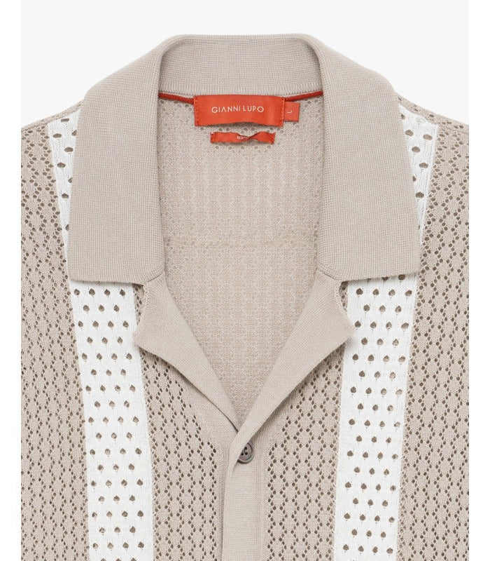 Gianni Lupo Camicia in Maglia Traforata Beige
