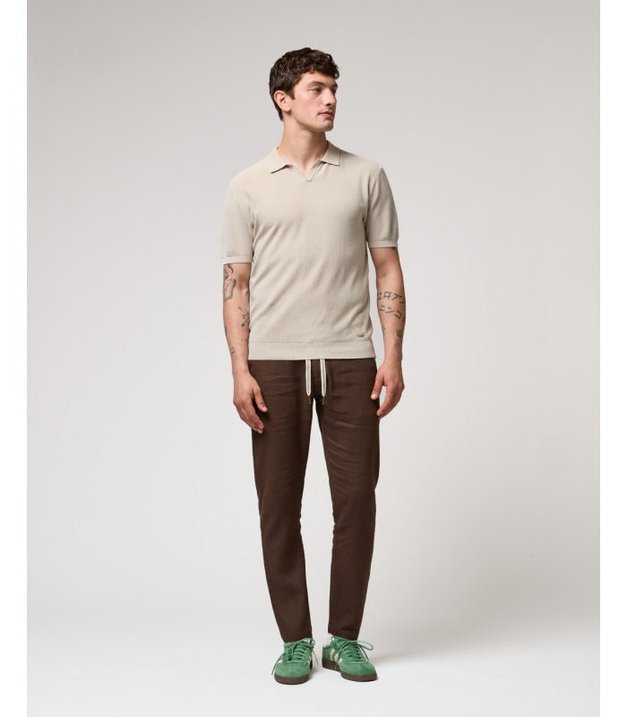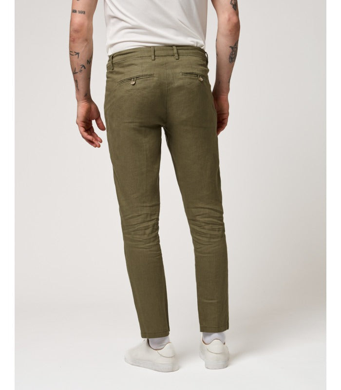 Pantalone uomo slim fit - 100% lino con coulisse tasche dietro a filetto con bottone