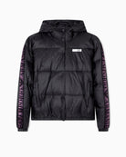 Giubbino donna con cappuccio caratterizzata dal dettaglio logo tape che percorre i profili delle maniche. Realizzata nell'innovativo tessuto tecnico Natural VENTUS7, composto da un mix di fibre naturali e sintetiche che permette di regolare la temperatura corporea espellendo il sudore come vapore acqueo, lasciando al tempo stesso una sensazione di comfort e morbidezza sulla pelle. Una proposta perfetta per accompagnare non solo look sportivi ma anche casual e pensati per il tempo libero.