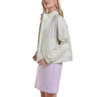 Giacca a vento crop realizzata in tessuto nylon 100d e dotata di cappuccio d’emergenza