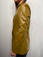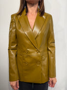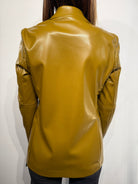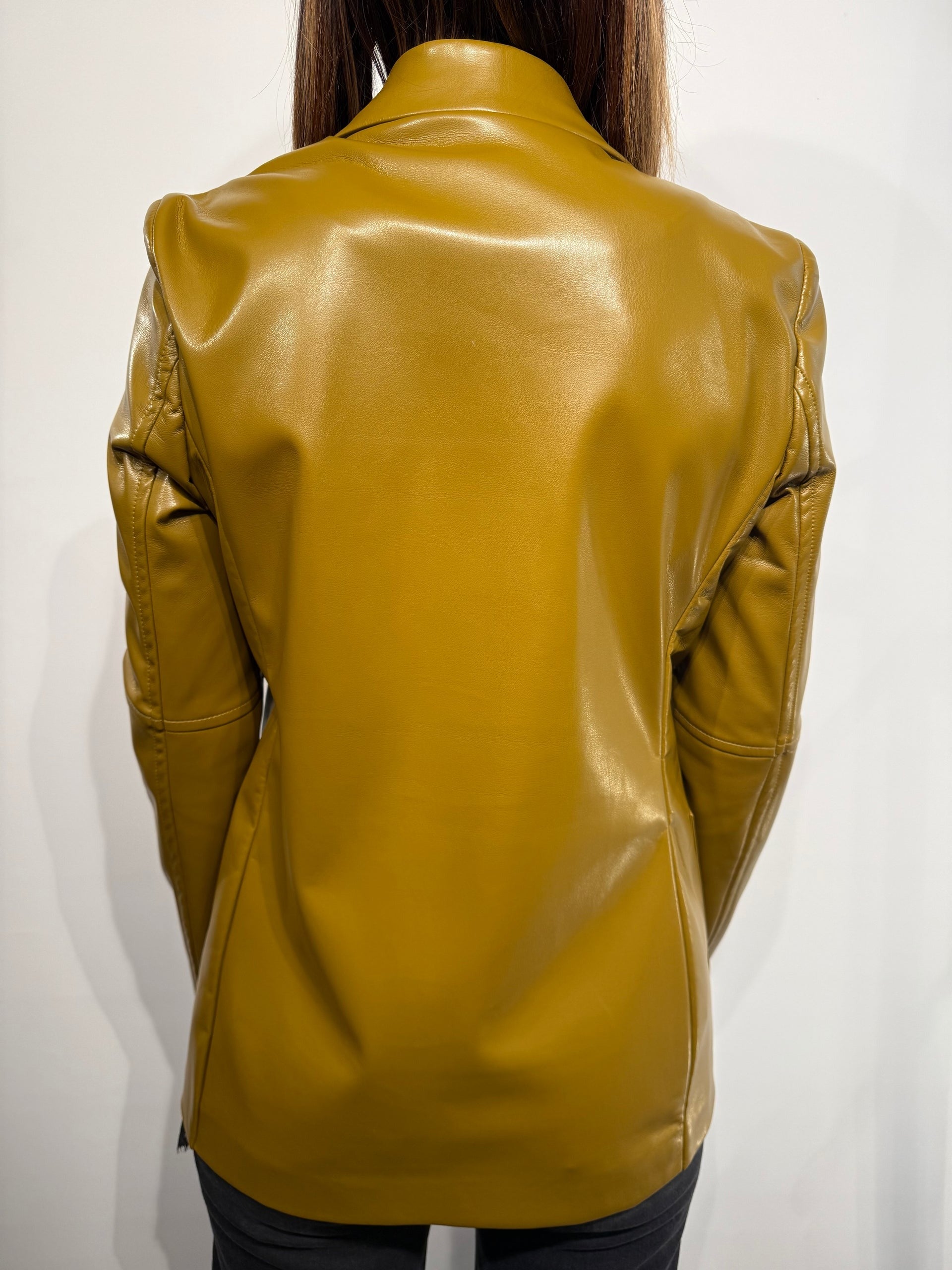 Giacca in ecopelle colore whisky. Modello doppiopetto con tasche frontali.